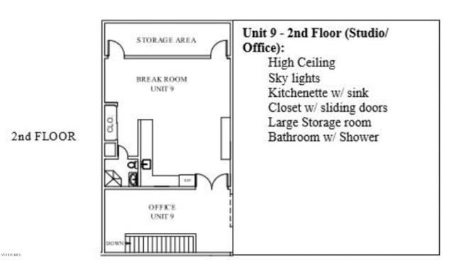 An approx 2,200 sf remodeled two-level professional office with a hip modern feel and appearance. Effective floor plan flow with a front-desk reception Entrance. 3 total bathrooms, break room on the 1st floor and a wide-open space on the 2nd level with a bathroom / shower, kitchen break area, storage, ample lighting. The floor plan allows for creative placement of work-stations while preserving open communication within the office environment. New hard surface flooring on the 1st level, built-in cabinetry and more. Great for owner-user or investor. Great location, close proximity to services, restaurants, retail, freeway access. Unit 9 is also for lease at $1.34 SF.