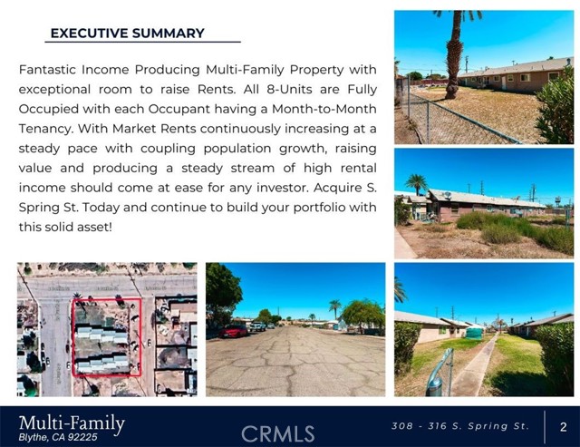 Fantastic Income Producing Multi-Family Property with exceptional room to raise Rents! All 8-Units are Fully Occupied with each Occupant having a Month-to-Month Tenancy. With Market Rents continuously increasing at a steady pace, raising value and producing a steady stream of high rental income should come at ease for any investor. Acquire S. Spring St. Today and continue to build your portfolio with this solid asset!