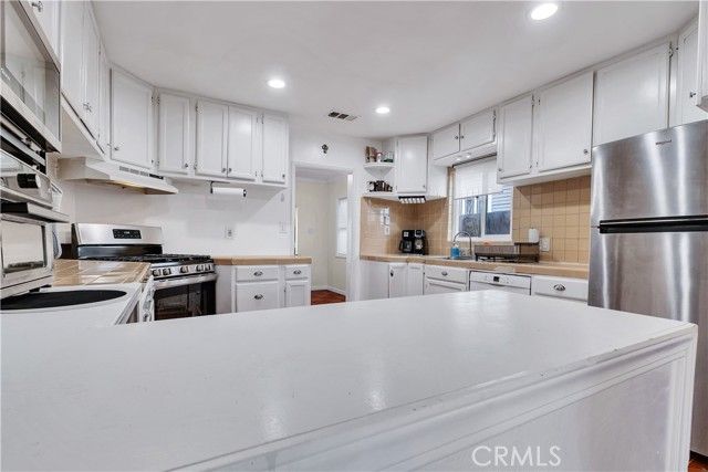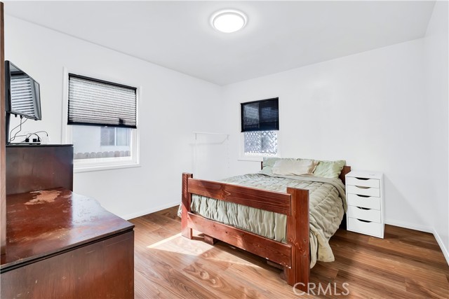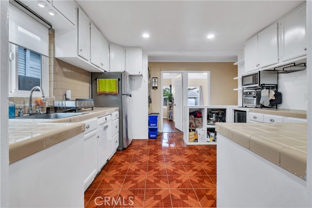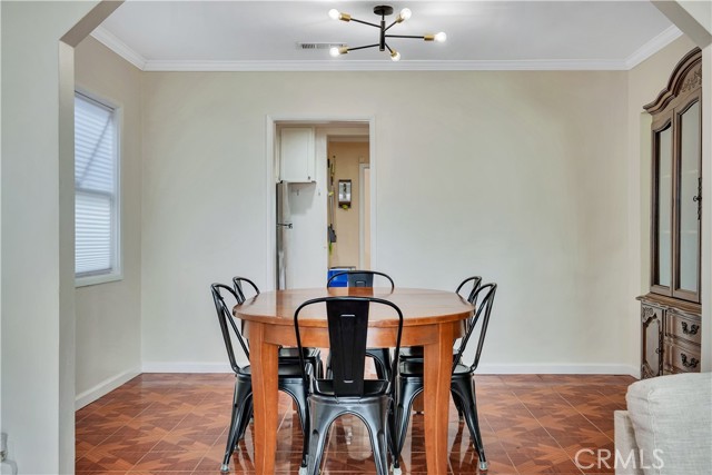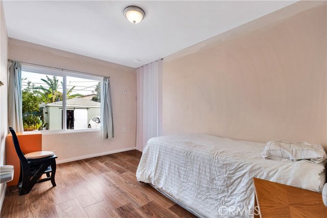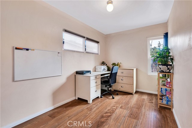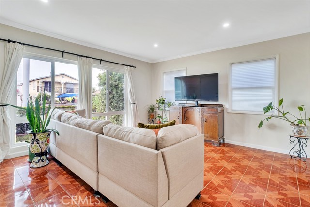 This newly painted exterior, 4 Bed, 2 Bath home (per Actual & MLS; Title shows 2 & 2), features...a full dinning room area, updated vinyl floors, recessed ceiling lights and crown molding, forced air conditioning & heating, spacious kitchen which includes a built in dishwasher, stove, and refrigerator (all included in the sale), the updated plumbing is a combination of copper pipes and PVC pipes. In addition, the home has recently upgraded dual pane windows, which makes the home very quiet, serene, and peaceful inside. The home has a recently installed roof (11/2024), a long driveway and the back yard fits about 4-6 cars, large back yard which could be used for a room addition, or an ADU, or the property is zoned LA2 for a 2-Unit building. The garage was converted by the prior owner, and was lender required to be disassembled, it is now being used as a workout gym and laundry room (washer and dryer are included in the sale). The front yard has an apple tree and the backyard has a fruit bearing lemon tree...the back yard is gorgeous and very serene.