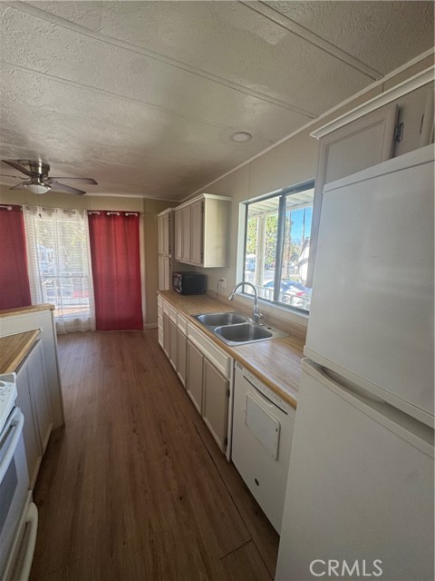 Spacious floor plan with two bedrooms and large full bath. Kitchen features extra counter and cabinet space and a spacious dining room. Living room features large windows creating an abundance of natural lighting. Newer vinyl wood flooring throughout the entire home. Separate laundry area in the home for convenience. Community features are the following: pool, spa recreation room, billiard room, laundry and showers.