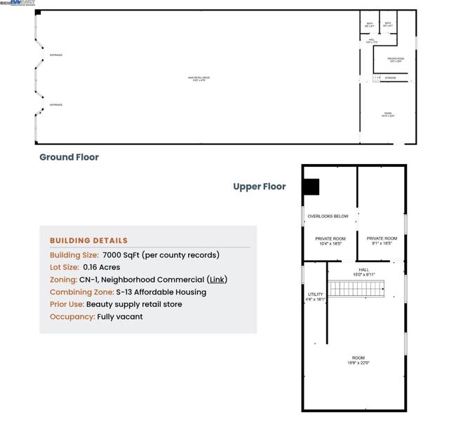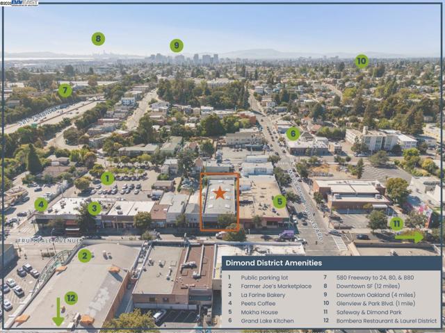 Dimond District Dream! 7,000 square feet ready to be transformed. With a 5500+ sq ft main open retail space, 3443 Fruitvale Avenue is spacious enough to become a future fitness, laundromat, healthcare, market, or restaurant concept. Consider dividing the building for multiple tenants or businesses each using their own entrance. Step inside either of the street-level entrances and through the main space to the “back of house”: two bathrooms (ADA), a large back room ideal for inventory storage, private office with window and more storage, plus rear door. The upstairs 800+ sq ft loft features another open room for storage or use as meeting space with natural light from windows and skylight, as well as two more private offices, one of which overlooks the retail floor. Large windows span the 50 ft of street frontage on Fruitvale Avenue. CN-1 zoning invites a wide range of dynamic uses: from cafés, boutiques, consumer service, group assembly and full-service restaurants to medical and professional offices. Additionally, development potential for mixed-use multifamily. Public parking is available around the corner in the Dimond Avenue lot & street parking is out front. Walk Score of 93, high vehicle counts (12K+ cars/day), and new residential being built right down the street.