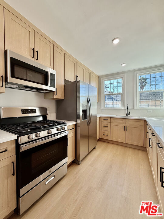 Completely renovated and move-in ready! This beautifully updated duplex unit features 3 bedrooms and 2 bathrooms, including spacious formal living and dining rooms. The modern kitchen boasts brand-new appliances and ample cabinetry and storage. Enjoy the convenience of an in-unit washer and dryer. Large windows fill the home with natural light throughout. The primary suite offers roomy walk-in closets and an en-suite bathroom with a double vanity and walk-in shower. Perfectly located in Mid-Wilshire, adjacent to Hancock Park and Larchmont Village and just minutes from The Grove, local shops, restaurants and the 10 Freeway.