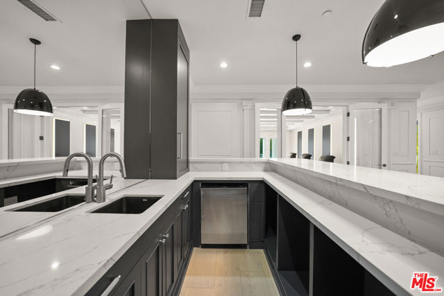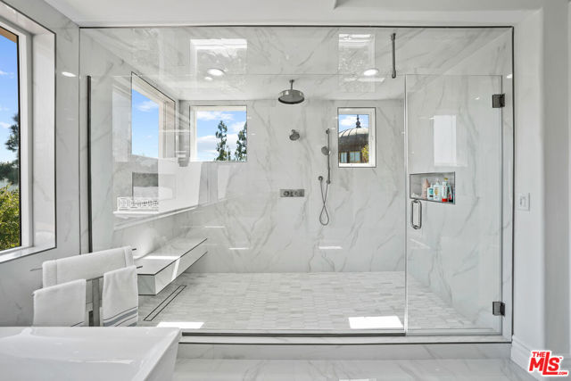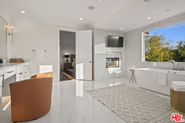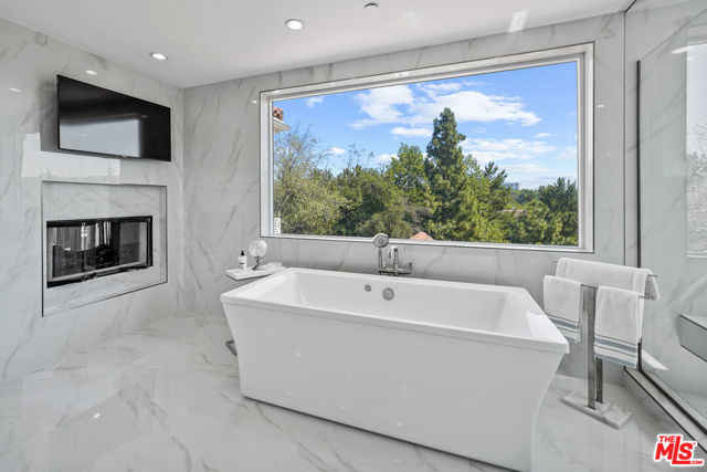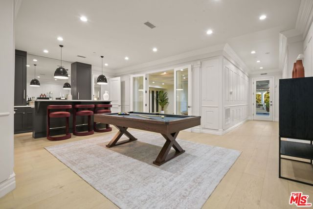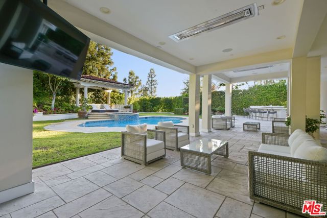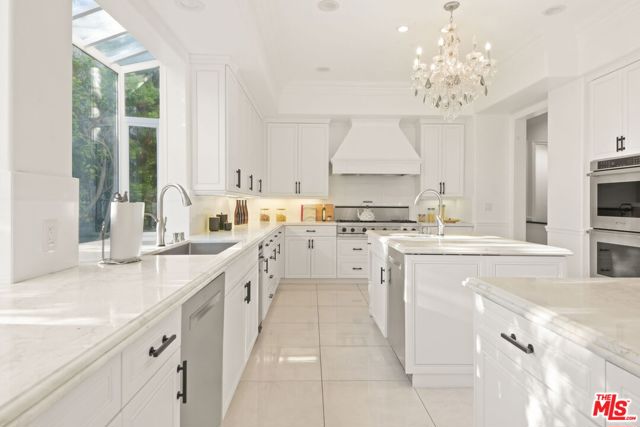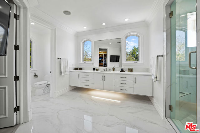 Rare opportunity to live in the highly sought after and exclusive 24-hour guard gated community of Bel Air Crest.This contemporary Mediterranean is hidden at the end of a quiet Cul-De-Sac, independently gated driveway providing more parking space in addition to amble street parking as there are only houses on one side of this street. Home is adjacent to the community greenbelt area providing the upmost in privacy while still enjoying views of nearby MountainGate Country Club golf course and tree top greenery.Stately impressions are made when entering this 3-story estate. Leaded glass double doors lead into the foyer where you are met with soaring ceilings and a glass cupola dome, flagged by a double winged staircase exuding elegance. Seamlessly flowing into the formal dining room with French doors leading out to a 1,000 sq ft plus balcony overlooking the backyard and pool. The main level also boasts a gourmet kitchen, family room with fireplace, living room with fireplace, powder room and luxurious office space with built in bookshelves and a balcony. The upper level features an exquisite primary suite retreat with a private balcony, wet bar, double sided fireplace, steam and sauna in the newly renovated his and hers bathrooms and closets. There are 4 additional en suite bedrooms, one of which has its own private staircase entrance. The Garden level has 2 additional en suite bedrooms, a home theater, living/dining area with built in bar, wine cellar, gym, pool bathroom with shower, and laundry room with both indoor and outdoor access from the garden. The backyard is an entertainers dream with an additional 1,000 square feet covered patio complete with ceiling heat lamps, a built in BBQ and bar area, covered gazebo and beautifully redone pool and adjoining spa. Outdoor living in California at its best with these large entertaining areas surrounding the pool in addition to the outdoor balcony on the main floor. The community of Bel Air Crest offers 5 tennis courts, basketball courts, a dog park, playground and a newly renovated clubhouse with a well-equipped gym, meeting room, lounge space and kitchen.