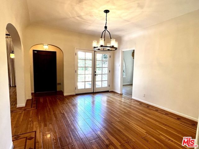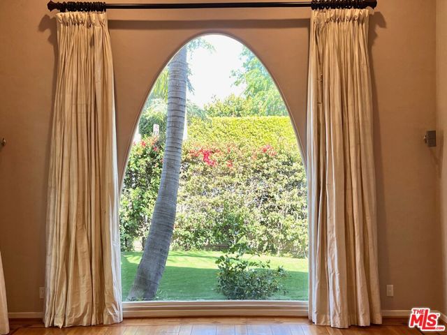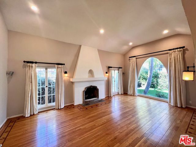 This classic Spanish home is situated on one of the most desirable streets in Beverly Grove, just steps away from the area's top-rated restaurants, shops, and the Beverly Center. With 4 spacious bedrooms( 2on Suite) and 3.5 bathrooms, this Spanish gem features a gorgeous 20-foot coved ceiling and hardwood floors throughout. The living room is equipped with a surround sound system and a cozy fireplace, creating the perfect space for relaxation and entertainment. The large renovated cook's kitchen is a chef's dream, featuring brushed granite countertops, an island, stainless steel appliances, ample cabinet space, and a breakfast area. The dining room opens up to a beautiful outdoor entertaining space with a built-in fire-pit and speakers, perfect for hosting gatherings. The enormous primary suite boasts a vaulted ceiling, double vanity, soaking tub, and double walk-in closets with built-ins. The bathroom is wired for a flat panel TV and features speakers in the shower. French doors lead to a private outdoor space, allowing for a tranquil and peaceful retreat. The property is fully gated with bougainvillea and hedges, providing ample privacy. The lush and professionally landscaped yard features artificial grass and charming fruit trees. Additionally, the property includes a detached 2-car garage with direct street access and plenty of street parking. Overall, this unique and beautiful property offers the perfect combination of luxury, comfort, and convenience.