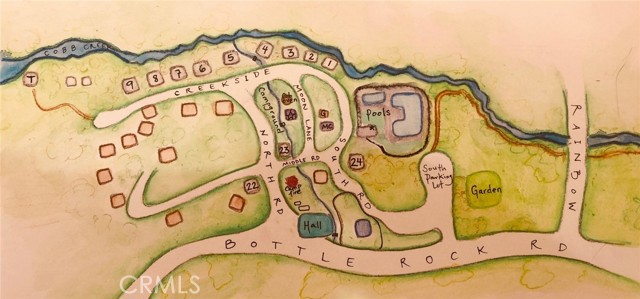 PINE GROVE RESORT is for sale. The finest creekside location in the whole county. Existing legacy hospitality business with massive potential. A truly unique 30+ acre, mostly level, property with 3000+ ft of Kelsey Creek frontage is a veritable blank slate of possibility. A very beautiful forest environment soaked in history. For over 100 years people have traveled to Cobb Mountain to enjoy the charming peace and quiet of Pine Grove. Featuring two spring fed pools, there is an abundance of opportunity to cool off during the summer heat. 24 cabins on the property as well as a three bedroom main house, and an event center building for larger gatherings. There are two mobile home parks with 35 hook ups, and many places for camping as well as a recently built bathroom facility. The commercial kitchen adjacent to the pool offers catering possibilities. The very cool TREEHOUSE is a popular feature that is always booked. There is obvious potential for increased income by upgrading or expanding the property as well as any number of functions that it could be adapted to: retreat center for yoga, wellness, or corporate events, weddings, family reunions or just a pleasant getaway vacation. Already a special destination, it could be enhanced to become a premier location to enjoy the best that Lake County's natural environment can give. SELLER FINANCING an option.