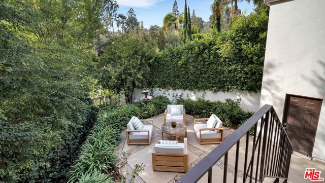 Tucked into one of Angelo Drive's most coveted enclaves, this masterfully renovated mid-century residence blends classic 1960s architecture with elevated contemporary upgrades, thoughtfully integrated to preserve the home's mid-century character. Set on a secluded drive just moments above Sunset Blvd, the property offers unmatched privacy and tranquil treetop outlooks.Beautifully reimagined, the approx. 3,400 SF floor plan includes 4 bedrooms and 4 refined baths, with expansive, sun-filled living spaces framed by restored French doors and oversized windows. A deep wraparound balcony connects the living room, dining room, and primary suite, creating a seamless indoor-outdoor flow. The sun-washed chef's kitchen features a generous stone-topped island, premium stainless appliances, custom cabinetry, and a sunlit breakfast nook. The primary suite opens directly onto the terrace and enjoys serene garden views and a spa-inspired bath with dramatic stone finishes, large walk-in shower, and a deep step-down soaking tub. Curated upgrades throughout include new flooring, renovated bathrooms, designer lighting, refreshed finishes, and improved systems. The grounds include mature landscaping, a spacious terrace for dining and lounging, and a wide motor court with covered parking. A refined, mid-century retreat in one of BHPO's most discreet pockets-offering privacy, architectural charm, and effortless access to Beverly Hills, Holmby Hills, and top-rated Warner Avenue Elementary.