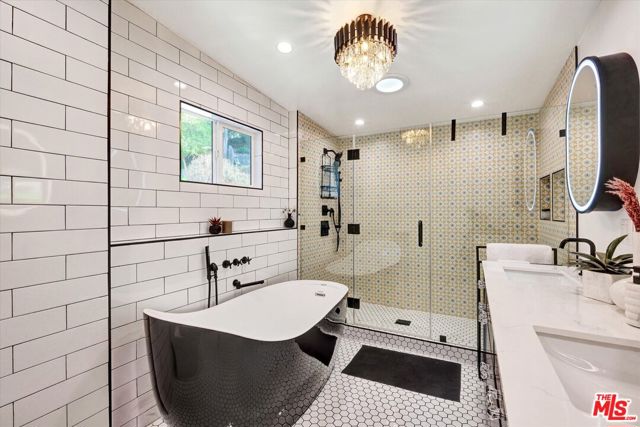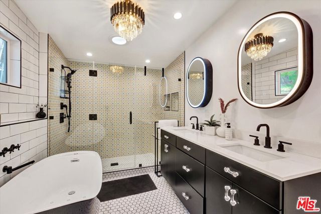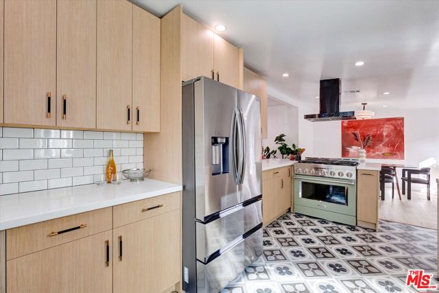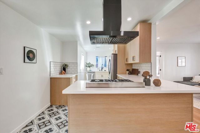 Every detail of this reimagined home was designed with intention not for resale, but for living beautifully. Recently rebuilt from the ground up by the owner for herself, this residence blends modern design with effortless comfort and an inviting indoor-outdoor flow. The open-concept floor plan was thoughtfully altered to create a more functional layout, anchored by a custom kitchen with natural wood cabinetry, stone counters, designer tile, and high-end appliances. Wide-plank floors and curated lighting add warmth and texture throughout the space, leading to a dining area and living room that open seamlessly to the outdoors. The primary suite was completely transformed, featuring a spacious bedroom with custom built-ins and an incredible en suite bath. A soaking tub and walk-in shower share a light-filled space finished in high-end tile and brushed brass fixtures more boutique hotel than bungalow, featuring handcrafted tilework, elegant fixtures, and meticulous attention to detail, an unmistakable reflection of the home's quality and care. Bedrooms are bright and restful, with abundant storage and a calming palette. Outside, the home's deep blue exterior and fresh landscaping make a striking first impression. A private yard, patio, and covered porch provide multiple areas for relaxing or entertaining under the California sun. Perfectly balancing modern upgrades with timeless design, this home offers a rare opportunity to move into a space that feels both brand new and deeply personal.