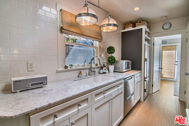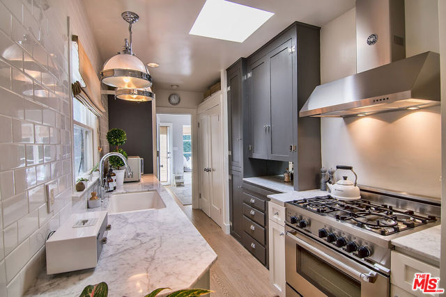 Amazing Oasis in the heart of Los Angeles is AVAILABLE FOR LEASE NOW! Tastefully renovated, this 1920s home on a tree-lined street in Larchmont Village area preserves immense character with the most sophisticated upgrades. This writer's bungalow sits on a very private lot behind mature hedges with lush landscaping. Notice the Wide Plank French Oak hardwood floors throughout the well-thought-out floor plan. The renovated kitchen includes custom cabinetry, Carrara marble, stainless steel appliances, Fisher Paykel refrigerator/dishwasher, and a built-in wine rack. Generous-sized master bedroom overlooking the lush private patio at the rear of the house. A quaint secondary bedroom is perfect for guests or an office/den. Wonderfully designed bathroom with Restoration Hardware fixtures & Ann Sachs tile. Other design elements include vaulted ceilings, skylights, French windows, a library nook w/ built-in seating, newer central heat/air! Available furnished or unfurnished, short or long term.