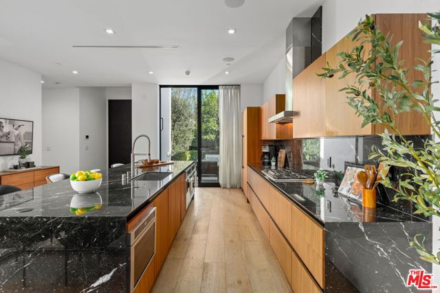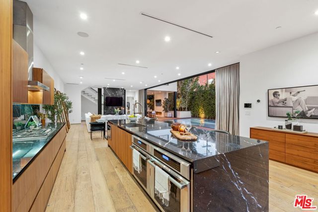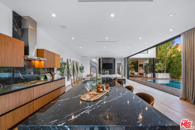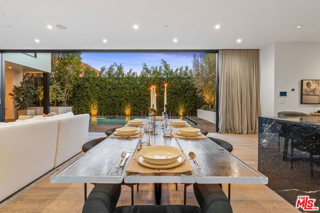 Gated and hedged, this bespoke newer construction contemporary home is located in the heart of the Beverly Grove neighborhood, just minutes away from The Grove and acclaimed restaurants, cafes, and renowned shopping destinations. Entering the front yard, one is greeted by a generous and expansive front deck. A voluminous open floor plan is revealed through the grand pivot door. A prominent wall of glass opens lengthwise to the yard, featuring a zero edge pool, spa and ample entertainment spaces, giving the feeling of a natural extension of the home and seamlessly integrated with the indoor living areas through sliding pocket doors. Four en-suite guest rooms are spacious and bright, all featuring walk-in closets, gorgeous bathrooms and floor-to-ceiling windows. A masterpiece of light and design, this Beverly Grove contemporary is filled with extraordinary moments, offering the perfect balance of open spaces and privacy, that is a model of style and sophistication. Fully furnished. Easy to show.