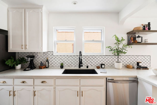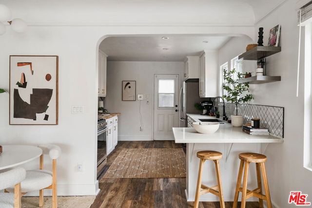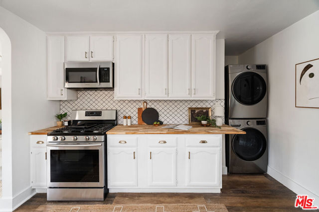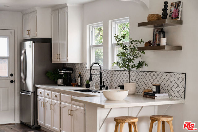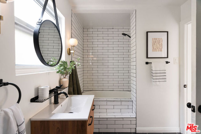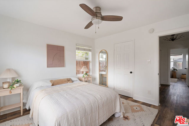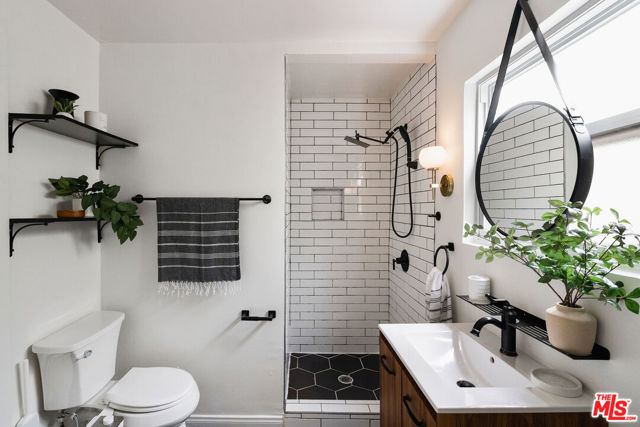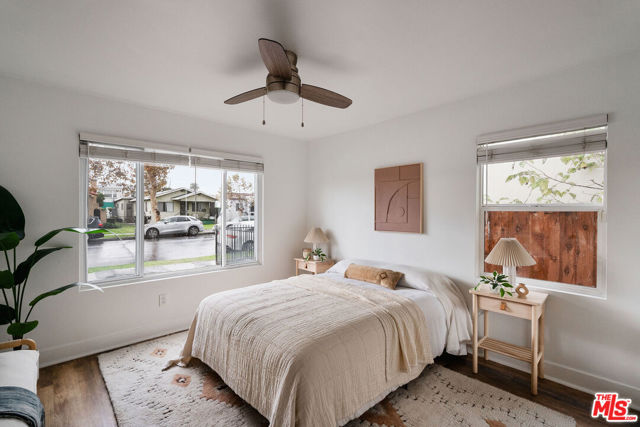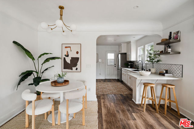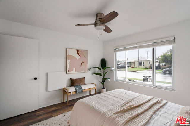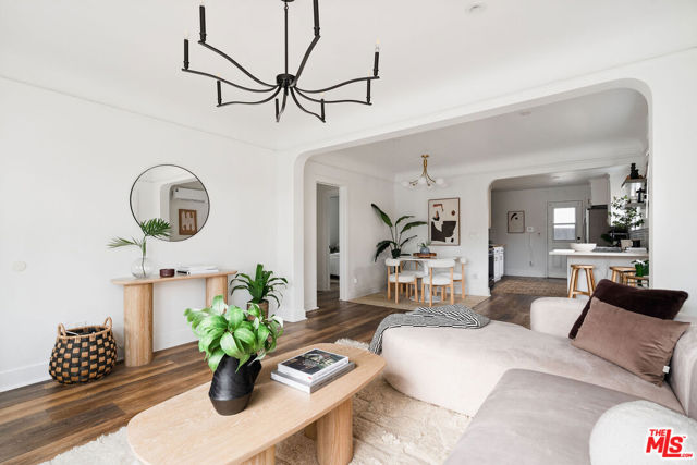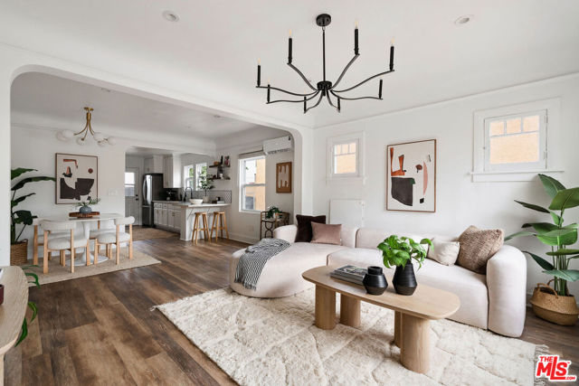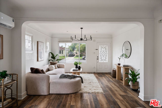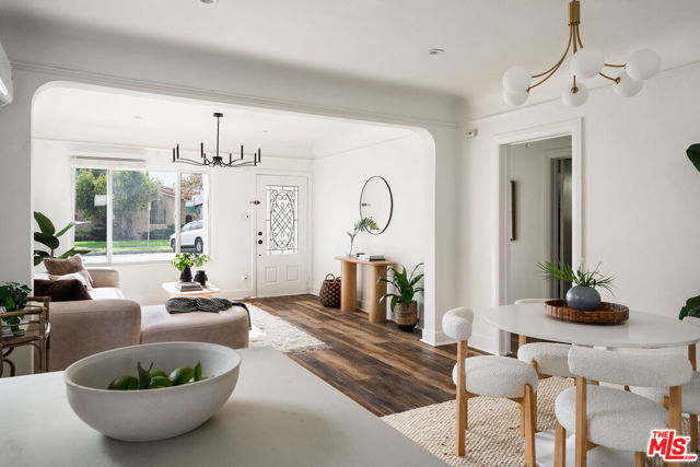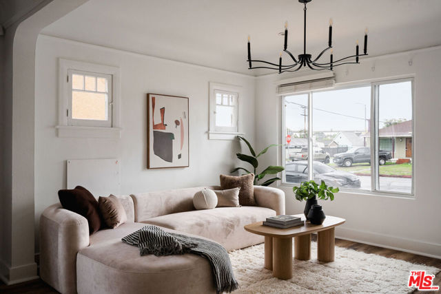 Welcome to this adorable 2+1 Spanish Colonial style bungalow with thoughtful details, quality upgrades, and pride of ownership. Inside, an open floor plan, white washed walls, coved ceilings with trim details, and large picture windows drench the home in sunlight providing the perfect backdrop for relaxing mornings, vibrant gatherings, and everything in between. From the Living Room, flow directly into the galley-style Kitchen made for connection & conversation that features calcutta marble counters, a refinished acacia wood counter, refreshed cabinets, a breakfast bar, stainless steel appliances, and direct access to the backyard. The interior Laundry is conveniently tucked into a wall and allows for easy multi-tasking. Modern meets classic charm in the unique Bathroom which showcases stunning tile work, vintage inspired lighting fixtures, a bidet, and dual showers - a large stall plus an elevated shower/tub combo. Functional upgrades and improvements include new sewerline, new electrical, new light fixtures, recessed lighting, resealed roof, upgraded plumbing, a new mini-split system, modern electric wall heaters, ceiling fans, new water heater, double pane windows with new blinds, engineered wood floors, and a RING alarm system. Retreat to the outside, where the expansive backyard is a serene oasis with plenty of space for entertaining, outdoor lounging and al fresco dining - the quintessential California living experience. Exterior upgrades include a fully-enclosed wood fence & gate, freshly-painted doors, new modern carriage lighting, new hardscape such as a new front entry walkway, newly poured front steps, a paver patio & a new concrete patio. The front and backyard also boasts a curated lush landscape with irrigation. The 2-Car Garage has a newer roof (2020), new garage door motor, and is fully drywalled with fresh paint, new lighting & shelving - the perfect extension of the home as an office, home gym, hangout space or future ADU. Attached to the garage is a beautiful pergola enveloped by a mature bougainvillea and a concrete patio with a shade sail providing additional entertaining space and could be its own private area for a future ADU. Easy access to 105, 110 & 405 freeways & public transportation making it convenient to get around the city. Close to LAX, SoFi Stadium, HP Casino, DTLA, Disneyland, beaches and new exciting developments. This RARE turnkey property boasts endless opportunities and versatile investment options in this vibrant, centrally-located neighborhood. Welcome home!