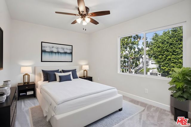 This beautifully renovated Larchmont residence blends contemporary elegance with timeless charm. Step inside through a new mahogany front door to a bright, airy living room featuring vaulted ceilings, recessed LED lighting, and white oak hardwood floors. The open layout flows into a custom chef's kitchen equipped with a Forno Capriasca 36" 6-burner range, custom range hood, quartz waterfall countertops, LED cabinet lighting, a Bosch panel-ready dishwasher, farmhouse sink, counter-depth 4-door refrigerator, decorative tile backsplash, brand-new cabinetry with crown molding, and a walk-in pantry.An inviting family/game room offers the perfect space for entertaining, complete with a custom bar, sink, dual beverage/wine refrigerators, skylights, and French doors leading to two outdoor patiosone covered with pavers and ceiling-fan lighting, the other a peaceful hardscaped retreat.The main-level primary suite features a custom walk-in closet and a spa-inspired bath with dual vanities, an oversized deco-tiled shower, and a mirrored barn door enclosing the private toilet area. Upstairs, two additional bedrooms include custom closets and share a thoughtfully designed bathroom with a dual-access vanity.Extensive upgrades include a new HVAC system and ducting, dual-pane windows, updated electrical and plumbing, custom lighting, skylights, redwood fencing, redwood decking with Trex railing, new garage door, and refreshed landscaping with LED lighting and drip irrigation.Ideally located near Larchmont Village with convenient access to Metro transit and major freeways.