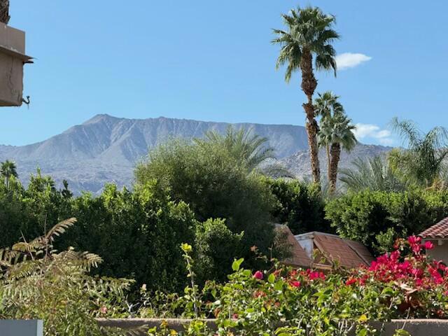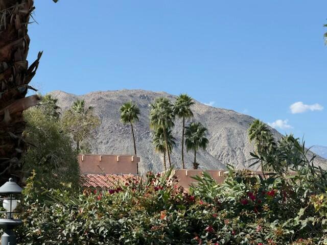 Price Reduction ADORABLE MID CENTURY BUNGALOW This two bedroom/two bath is the perfect desert home or getaway. Located on a cul-de-sac, all on one level, and walking distance to El Paseo for dining and shopping. Small private complex of just 4 units with shared pool. Great space, lots of light, view of the pool and mountains, plantation shutters thru out, double pane windows and LOW HOA fees. Lovely updated kitchen w/stainless appliances. Washer/dryer inside unit. Large primary bedroom w/large shower in primary bath. Updated guest bath. Inviting large front patio with Awesome mountain views. One car Garage w/storage. Join the Shadow Mountain Social Membership and meet your neighbors. Come take a look! You will not be disappointed!