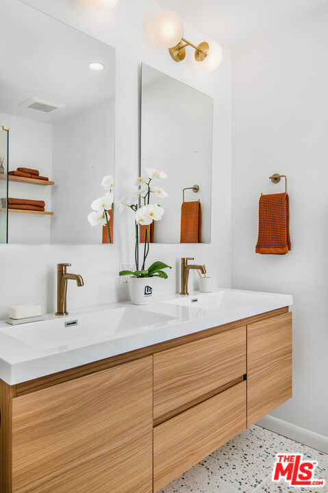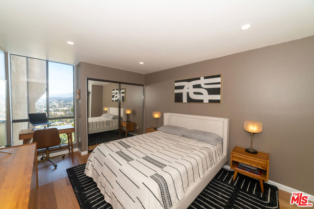 Elevated above the City in tranquil Monterey Hills, this fully renovated 2-bedroom, 2-bath residence blends designer sophistication with everyday magic, where every room frames an extraordinary, ever-changing panorama. And yes, there's a private balcony perfectly positioned for morning coffee, golden-hour martinis, and quiet stargazing nights. Completely renovated, the home unfolds as a curated world of thoughtful splendor. Engineered Blue Ridge Oak floors sweep throughout, illuminated by recessed LED lighting and enhanced by Kasa smart switches for an intuitive, indulgent living experience. The kitchen is a true showpiece: custom cabinetry, quartz countertops, LED undercabinet lighting, a tile backsplash, soft-close everything, Samsung smart appliances, and a charming breakfast area. Whether you're cooking, sipping, or hosting, the sweeping views follow. The primary suite lives like a boutique retreat, framed by its own sweeping vista. The ensuite bath elevates the experience with terrazzo floors, a custom glass shower wrapped in exquisite tilework, Delta fixtures, a floating dual-sink vanity, and an Eco Toilet. A split floor plan provides ideal separation, placing the guest bedroom on the opposite side complete with a built-in desk nook that overlooks the same cinematic horizon. The guest bath continues the elevated aesthetic with terrazzo, custom tile, a deep soaking tub, and designer details throughout. Numerous closets have been professionally outfitted, offering practical and plentiful storage. The unit also includes two parking spaces and a personal 120V EV charger, with the community offering secured access, a pool, and a spa. Beyond the front door, the lifestyle is equally compelling. Bordering vibrant Highland Park and charming South Pasadena, you'll never come up short of an eclectic mix of dining, culture, nightlife, and boutique shopping - everything from York Boulevard's cafes and galleries to Figueroa's beloved restaurants, vintage stores, music venues, and community events. You're also moments from the Metro Gold Line, the Arroyo Seco, parks, hiking trails, and the energy of some of LA's most adored neighborhoods. This is more than a beautifully renovated home; it's a modern, serene hilltop escape with the very best of Los Angeles at your fingertips. A perfect balance of tranquility, luxury, and convenience.