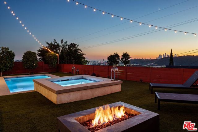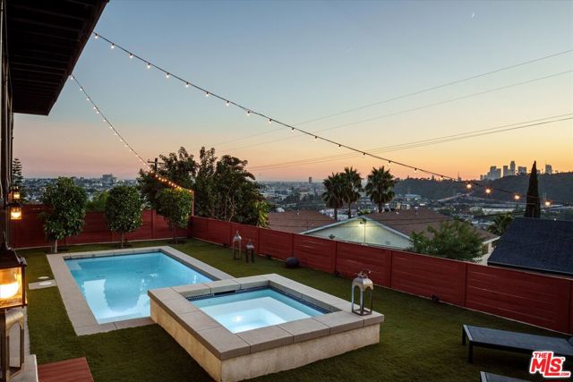 Introducing Vista Gloriosa, a unique and dreamy Mt. Washington retreat, where the city twinkles like candlelight and the sunsets blush just for you. With panoramic views that sweep from sunrise to the shimmer of downtown and front-row seats to the Friday and holiday fireworks at Dodger Stadium, this is not just a home, it's an opportunity to fall in love every day. Inside, sophistication meets soul. Greet guests at the formal living room entry, but take just a few steps down to the main living level featuring 7-channel Dolby Atmos built-in speaker setup. Living room level offers the epitome of California indoor/outdoor living--a modern minimalist kitchen boasting stainless appliances, formal dining, two sets of cantilever doors to an entertainer's deck with insane views, plus large family room with fireplace, dry bar and powder room. Movie lovers enjoy a 9-channel Dolby Atmos furnished home movie theater, also accessed on main level. Upstairs, the primary suite is your private sanctuary, featuring an oversized spa shower preplumbed for 2 showerheads, with peekaboo Hollywood-sign views, and up a few steps, 2 more ample guest rooms, and an additional bath. In the pool level, a permitted bonus room with its own entrance, ideal for entertaining and guests. Enjoy the shimmering new saltwater pool and spa, with turf surround, outdoor sound system, outdoor tv connections, cafe lights, and plenty of spaces to lounge. Mature avocado, orange and lemon trees complement your fun-filled daytime BBQ, and romantic nighttime moments await. Solar PV system means virtually no electric bill, EV charger hookup in garage, plus smart home features throughout - voice controlled automated lighting, locks, thermostats. Whether you're entertaining under the stars, soaking in the silence of a solo swim, or watching the city celebrate in the distance, this is the kind of home that captures hearts and holds them. Welcome home!