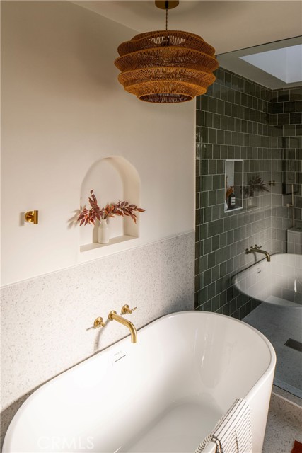 Nestled in prime Eagle Rock just below the trendy shops and eateries on nearby Colorado Blvd and a stone's throw to sought after schools awaits 4843 Genevieve Ave, a light and bright sanctuary space brought to you by K + S Collective! Upon entering the pathway through the lush fenced in front yard and into the main living space you'll find that absolutely everything has been lovingly custom designed from head to toe with thoughtful details and updated with meticulous craftsmanship. This exquisite home features three bedrooms, two baths PLUS a detached studio with its own half bath, perfect for guests, work, or creative pursuits. With warm wood flooring, updated systems, designer selected finishes, wood accents, custom wallpaper, skylights and detail work, you'll find that every space in this home has been carefully curated to create beauty, comfort and joy. The bright floor plan of the home flows with ease and the expansive living room effortlessly opens to a gorgeous chef’s kitchen that features custom built cabinetry, beverage storage, top-of-the-line appliances and an abundance of storage. Just beyond the kitchen a charming built-in banquet area serves as a picture perfect family gathering and dining space. The ultra private and dreamy primary retreat is tucked away in the back of the home and features a massive walk-in closet that could double as a creative space or nursery and a luxurious ensuite bath complete with a chic soaking tub and spa-like glass walk-in shower. There is also a huge laundry / craft room with lovely custom shelving and finish work that doubles as a sweet homework station, home office or zoom meeting headquarters! Outside, you'll find a beautiful large grassy yard perfect for lounging, play, or epic family gatherings. A long gated driveway leads to a garage that adds convenience and functionality. The adorable detached studio / guest space is located just behind the spacious garage and offers versatility galore. This sweet gem is a classic Eagle Rock dream home!