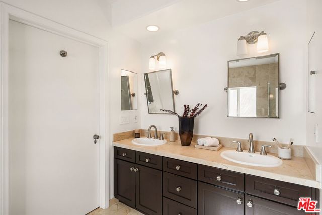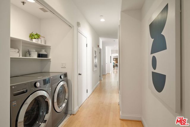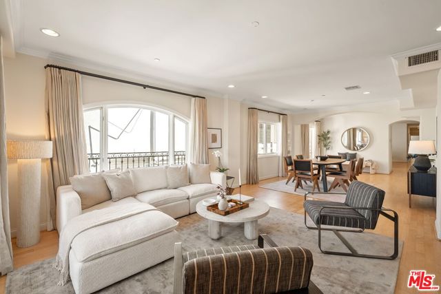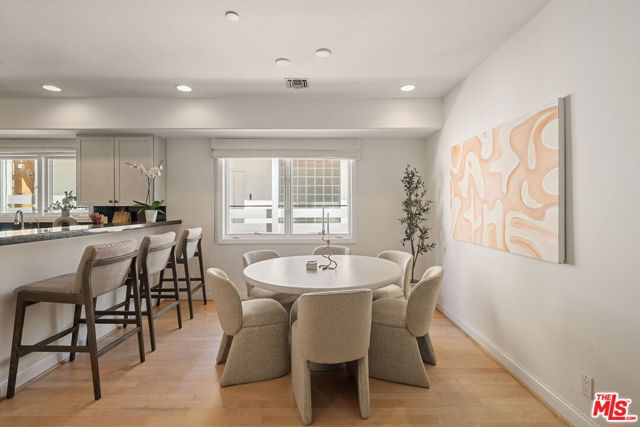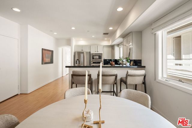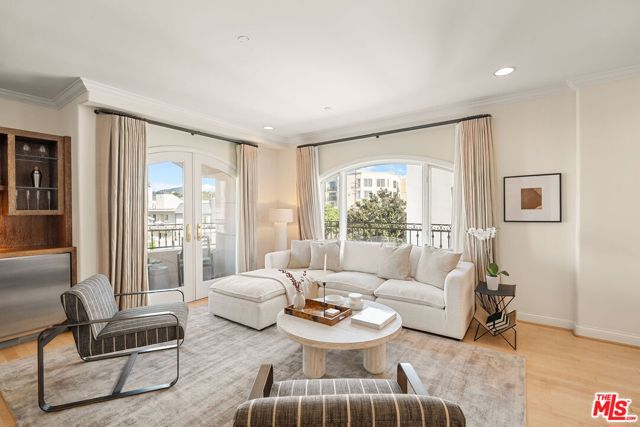 Luxurious, light, bright and spacious 3BR/2.5BA in the heart of Brentwood, just blocks from San Vicente and the Farmer's Market! Front facing with balcony, this designer DONE condominium feels like a single level home from the moment you enter. Large open living and dining room concept with recessed lighting, crown moldings, custom shelving and natural hardwood floors. Chef's kitchen with steel appliances connect to the family room with bar top and multiple eating areas. 3 bedrooms including the most divine and large primary suite with connecting spa like bathroom featuring a sunken tub, giant shower and double vanity sinks with granite countertops. Central Air/Heat and Laundry inside the unit. Controlled entry with security camera and intercom. In the gated garage, your two parking spots come with your own Tesla charging station. With only 8 units in the building makes this quiet and private retreat a wonderful place to call Home. An A+ gem and location in Brentwood. Must see!