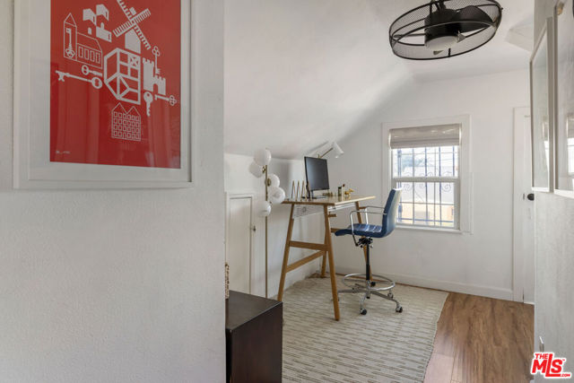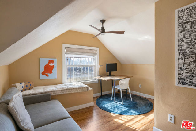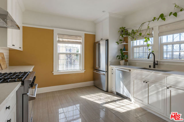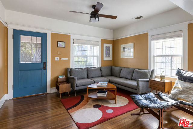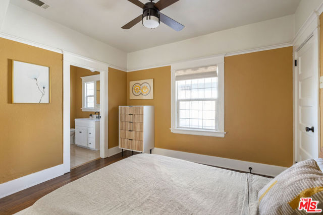 Get all the space you need with this updated Bungalow in a central location, close to USC and Exposition Park. The expansive layout includes two main-level bedrooms and bathrooms, plus three bonus rooms in the versatile upper level - a perfect setup to accommodate life, work, and creative pursuits. The tastefully landscaped gated yard leads to the front porch, a breezy spot for morning coffee. Sunlight fills the open living and dining room anchored by a decorative mantel; charming details abound, including original bookshelves and beautiful millwork throughout. The spacious kitchen enjoys great light and finishes include white cabinetry, tile backsplash, and stainless appliances. The large flat yard is a serene environment to spread out, stage alfresco dinners, or relax with a book. Amenities include central AC, a detached garage, and a long driveway for parking. USC is a short drive away; Exposition Park, BMO Stadium, and the 110 Freeway are within easy reach.
