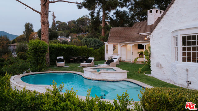 Set beyond private gates on one of Bel Air's most esteemed streets, this Bellagio Road estate offers exceptional privacy and timeless character on an expansive, secluded setting. A long gated driveway framed by towering pine trees leads to the hilltop residence, creating an arrival experience that feels both grand and entirely removed from the city below. Originally envisioned by architect Gerard Colcord, admired for designing homes for many of Hollywood's most notable figures, the property reflects the romance and craftsmanship that define his enduring legacy. The residence includes a collection of inviting bedrooms and bathrooms, each positioned to enjoy serene treetop views and abundant natural light. Classic Colcord detailing, wide plank flooring, exposed beams, custom millwork, multi pane windows, and thoughtful built ins fill the interiors with the warmth and charm that have come to symbolize early Bel Air architecture. A separate bonus space with its own bathroom provides added versatility for guests, work, fitness, or creative use while maintaining privacy from the main residence. French doors throughout open to a generous veranda overlooking the lush lawn, sparkling pool, soothing spa, and a picturesque gazebo. The grounds offer effortless indoor and outdoor living along with a true sense of retreat. Mature landscaping and verdant surroundings ensure complete privacy while remaining only moments from premier Westside shopping, dining, and top public and private schools. This Bellagio Road estate is a rare offering in Bel Air, secluded, romantic, and an extraordinary opportunity to own a legacy property in one of the most coveted settings in Los Angeles.