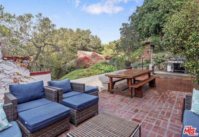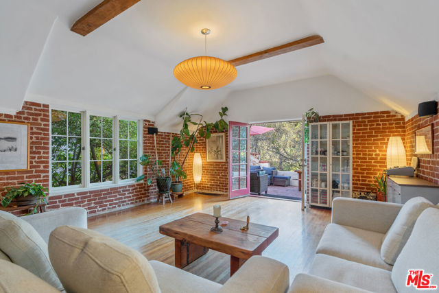 Prepare to be swept away to this charming 1930's Laurel Canyon Cottage featuring 3 bedrooms and 3 bathrooms. Set back on a peaceful road, this home offers privacy, tranquility, and abundant natural light while nature is showcased through every window. Ideal for both lively gatherings and peaceful downtime, a formal dining flows into the generous living room featuring hardwood floors and post-and-beam accents, opening through French doors to a brick patio, perfect for enjoying morning coffee to birdsong or unwinding with alfresco dinners. The primary bedroom includes an en suite bath and hand carved ornate closets; bringing a sense of the bohemian flair, notorious in Laurel Canyon living. 2 bedrooms and 2 bath live upstairs while the 3rd (a versatile bonus room) is located just off the kitchen with an adjoining bath. The perfect flex space for work, guests, or creative pursuits. Your gated front yard features a prolific lemon tree and garden beds perfect for growing your own herbs and veggies. A 1-car garage sits conveniently beside the home with potential for an additional creative space or future enhancements. Experience the tranquil canyon lifestyle you've been been dreaming of, all just minutes from Sunset Blvd, Pace and the Canyon Country Store. Located in the highly coveted Wonderland School district.
