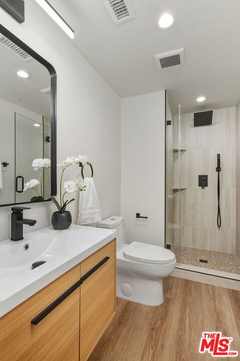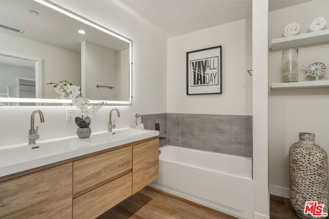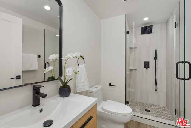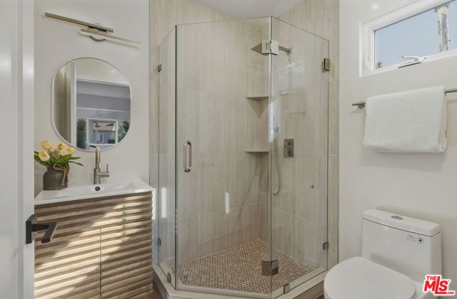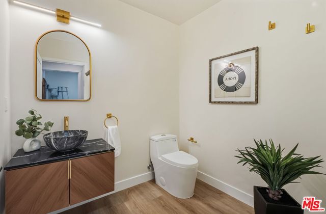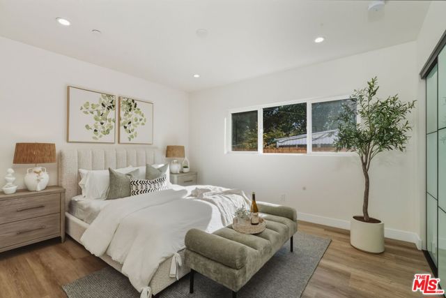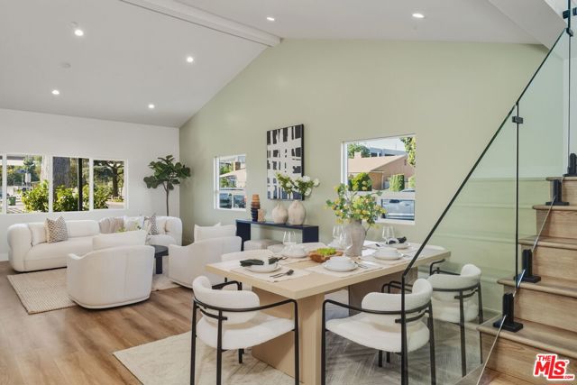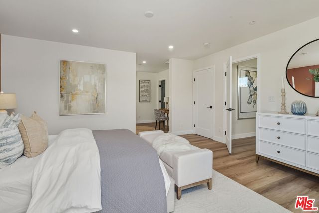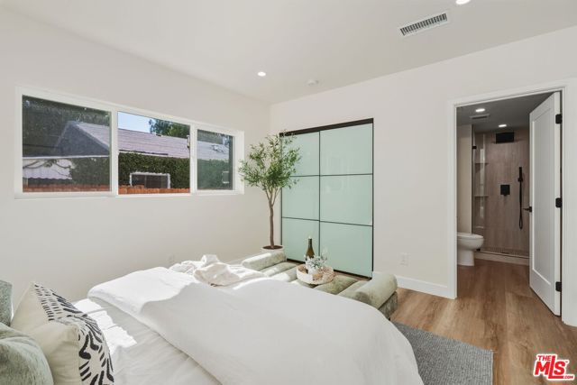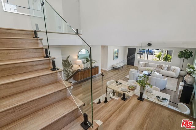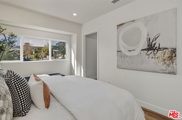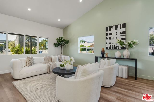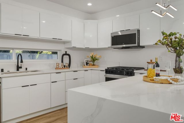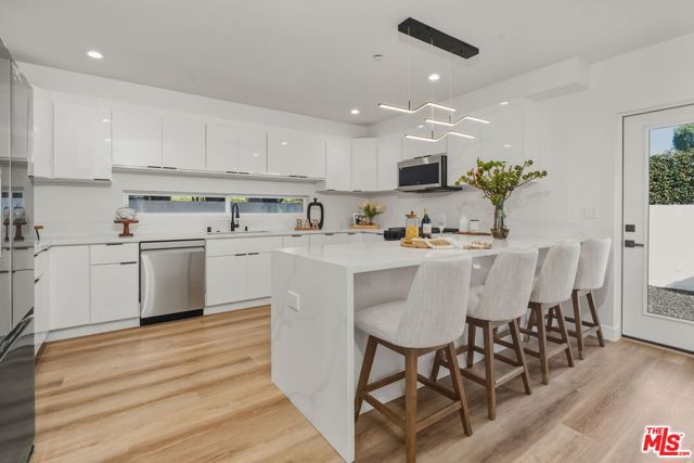 Newly renovated inside and out and expanded Westide 4 bed/4.5 bath stunning Contemporary style home with spectacular designer finishes throughout. Covered front porch opens to dramatic high vaulted ceiling spacious living room and dining filled with natural light. All new kitchen with the latest modern cabinetry, stainless steel appliances including gas range and oven, quartz countertops with waterfall edge breakfast bar and door with glass panel leading to backyard. 3 bedrooms all with ensuite remodeled bathrooms with tile finishes. 2nd story stairway with contemporary glass railing leads to stunning spacious primary suite with sliding door to private balcony, separate office/den area, 2 separate walk-in closets and luxurious primary bath with dual basins and separate bath and shower and linen shelving. Additional features include newly replaced dual-pane windows throughout, central ac/heat, contemporary wood-like flooring throughout, all new bathrooms, large laundry room on main level. Close proximity to UCLA, Sawtelle restaurants and shops, Westfield Century City and 405/10 fwy access. Move-in ready!