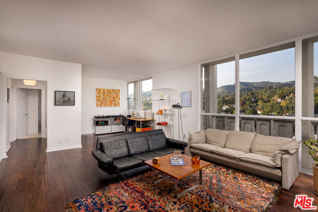 This elevated mid-century retreat offers the kind of sweeping Los Angeles views we all know and love but almost never get to live with. Residence 1002 at the iconic Los Feliz Towers feels like stepping quietly into a world lifted above the city, where the familiar skyline becomes an everyday backdrop. This rare 10th-floor corner unit transforms those seldom-experienced vistas into a lifestyle. Floor-to-ceiling glass opens to unobstructed northeast panoramas that begin at the Griffith Observatory, sweep across the lush hills of the park, and stretch all the way to the snow-capped mountains beyond the metropolis. The generous layout flows with the ease of its era, anchored by a spacious den that could readily serve as a second bedroom. Thoughtful updates including cork flooring in the kitchen preserve the understated glamour of the building's mid-century roots. Set in the heart of vibrant Los Feliz, you're a short stroll to neighborhood favorites like Little Dom's, All Time, Alcove, and more. In a community prized for its privacy, amenities, and architectural pedigree, the true luxury here is the panorama itself: nature and city unfolding in every direction, reminding you viscerally that you have arrived.