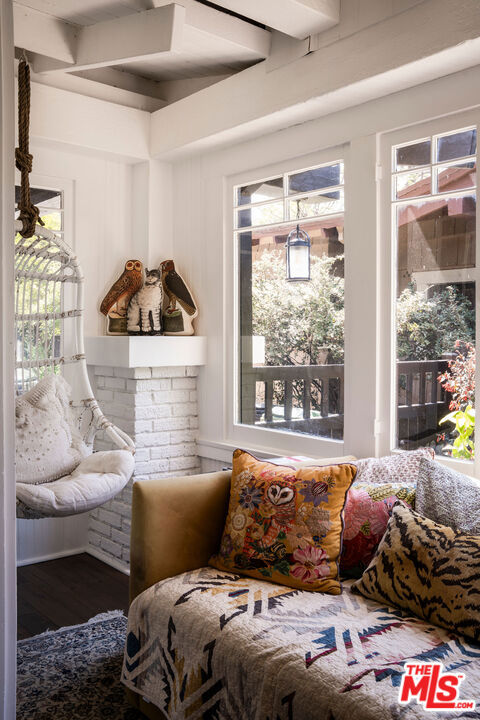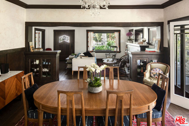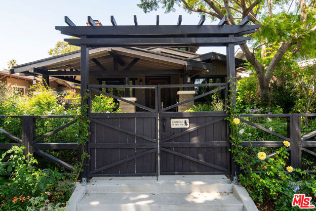 Gorgeous Craftsman rich with character and renovated to perfection on the Eastern edge of Larchmont village. The first restoration of this historic property came in 2019 when HGTV's Tarek & Heather El Moussa purchased the home and spent months reimagining the design, while leaving cherished details in tact. A welcoming front porch wraps around the entire front of the house as the extra-wide wooden door with glass emblem detail leads you into the beautiful spaces. New hardwood flooring, dual-paned windows and designer touches can be found throughout. Original plaster walls, built ins and a newly-tiled fireplace create a warm ambience. Sunshine filters through as you make your way through the dining room, bonus sun porch and adorable eat-in breakfast area. The chef's kitchen was completely redone with new cabinetry, quartz counters, high-end stainless appliances and a large center island with stools which has become the central gathering spot in the kitchen. Primary suite on the 2nd floor enjoys its own level and is surrounded by windows and views of the architectural roof lines. Ensuite primary bath with dual vanity, nickel fixtures and a custom-tiled shower with bench. On the first level are 2 spacious bedrooms that share a renovated hallway bath and a 4th bedroom (or office) nicely located in the front of the house. In 2024 the new caretaker of this lovely home picked up where the El Moussa's left off. Creating gardens in the front and back - intentionally designed with beauty and longevity in mind. Meandering paths, a working pond and outdoor lighting create a tranquil atmosphere for day or night. The front enjoys a newly constructed privacy fence, designed to look like its been there for ages and a well-established jacaranda tree offers a canopy of privacy. Upgrades include foundation bolting, roof repair, electrical & plumbing upgrades and a new irrigation system. Decorator touches throughout include new hardware, window treatments and light fixtures. A new fence at the back of the property and a detached 2-car garage finished off for multiples uses. Take a short stroll to the Larchmont farmers market on Sundays and enjoy the strong sense of community in this beloved neighborhood.