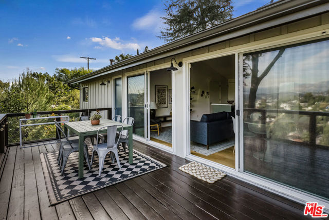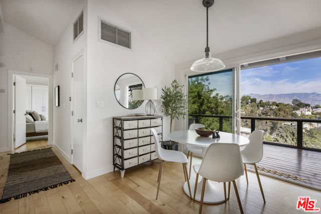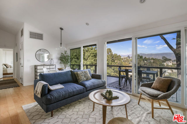 Set in the verdant hills of Mount Washington, this updated mid-century home offers an easy, open layout built around its defining feature: stunning panoramic views that anchor both the living and dining areas. The large windows and sliding glass doors create a wonderful indoor/outdoor feel while drawing your eye to a spacious wood deck and a tiered backyard, creating a natural extension of the living space. The charming kitchen flows effortlessly to the dining area and features Caesarstone countertops, a center island, stainless-steel appliances, a built-in drawer microwave, and a wine refrigerator. The primary bedroom, with private access to the deck, is joined by two additional bedrooms, including one with a built-in Murphy bed that maximizes flexibility for guests or a home office. The oversized two-car garage could add a multi-purpose room as an art studio, gym or workstation. Located in the highly coveted Mt.Washington Elementary School boundary and mere minutes to all the great spots in Highland Park, this home has it all.