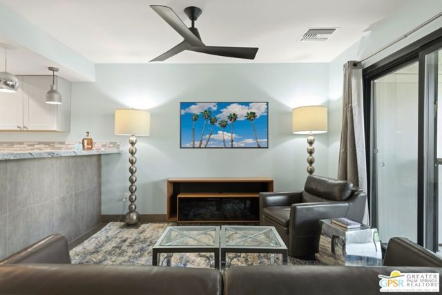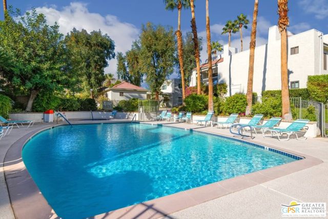 Welcome to this beautifully renovated 1-bedroom, 1-bath ground-floor condo at the highly desirable Riviera Gardens! This end unit is just steps from one of the community's sparkling pools and spas, with convenient covered carport parking nearby. The home has been completely transformed with a comprehensive remodel - the original accordion doors between dining and bedroom were replaced with a proper wall, creating true separation and a dedicated dining space with better privacy and flow. The kitchen features all new stainless steel appliances including dishwasher, microwave, range/oven, and refrigerator, and has been intelligently reconfigured for improved walk-through access. Updated throughout with tile flooring, updated bathroom, expanded bedroom closet, and a walk-in laundry area housing stackable washer/dryer. The living area opens to a private covered patio with green belt views, perfect for relaxing. This gated, resort-style community sits on fee-simple land you own (no land lease!) and offers lush mature landscaping, multiple heated pools and spas, and controlled access. Located minutes from uptown and downtown Palm Springs dining, shopping, and entertainment, yet tucked away in a peaceful setting. Ground-floor convenience, end-unit location, pool-adjacent positioning, and complete updates make this perfect as a primary residence, vacation getaway, or investment property. Move-in ready and waiting for you!