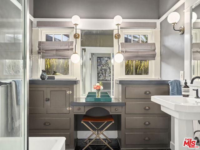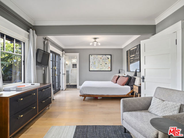 Welcome to Sunset Square, one of the most sought out neighborhoods in LA with Walking distance to the largest off leash dog park in America. This beautifully remolded home has 3-bedroom, 4-bath including a full guest house sits on a prime street north of Sunset on an expansive 7,000 sq ft lot. This home has a Beautifully designed resort like pool, and Professionally landscaped private yard that adds to this enchanting home and timeless architecture. This meticulously designed living space is over 2,466 sq ft of stunning original details including three fireplaces, crown molding, wainscoting, and lovingly restored windows seamlessly paired with sophisticated updates by acclaimed designer Matthew Lanphier. A spacious library and adjoining sunroom provide flexible living options and can easily function as a 3rd bedroom or creative studio space. The designer kitchen is both stylish and functional, offering ample workspace and premium finishes, while the reimagined primary suite boasts a spa-caliber bathroom complete with heated floors. Every room exudes character, warmth, and thoughtful craftsmanship. Step outside to your own private resort. The sprawling backyard features a sparkling pool, raised spa, outdoor shower, multiple lounge areas, and lush landscaping that creates the ultimate indoor-outdoor escape perfect for relaxing or entertaining. The fully permitted 700 sq ft guest house (ADU) is an incredible asset, offering its own kitchen, bathroom with heated floors, and in-unit laundry. Ideal as a guest retreat, income-producing rental, or private work sanctuary, it adds exceptional value and flexibility. Situated in the heart of historic and highly sought-after Sunset Square, you're moments from the area's best amenities luxury cafes, Bristol Farms, fine dining, and vibrant nightlife .A rare blend of charm, privacy, and modern convenience this extraordinary property is a true Sunset Square gem. PRICED TO SELL THIS WILL GO QUICK Easy to show Broker lives in the neighborhood.