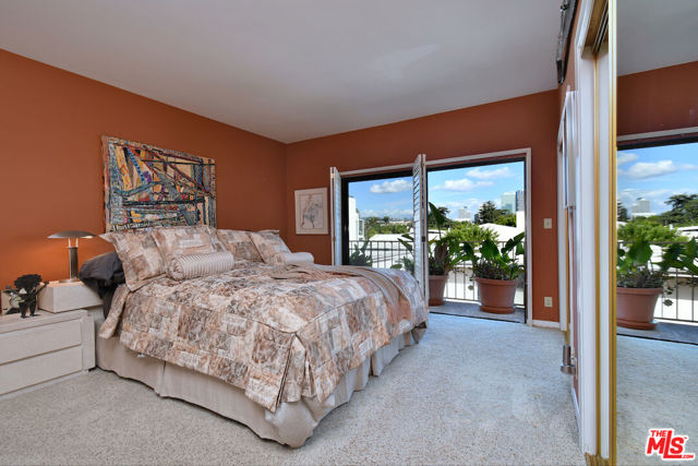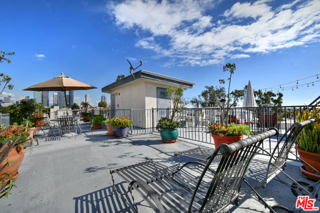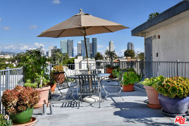 Experience luxury penthouse living in a boutique six-unit building in the highly coveted Westwood / Century City area of prime West Los Angeles. This elegant residence provides approximately 2,000 sq ft with three bedrooms, three bathrooms, a versatile den/family room, and an upstairs loft/office that serves as the third bedroom. Soaring 18 ft ceilings, classic wood floors, plantation shutters, and abundant natural light create a welcoming atmosphere throughout. The gourmet kitchen features a spacious breakfast bar and extensive cabinetry, while the grand living room offers a stone fireplace and dining space opening to a private balcony. Enjoy entertaining in the den/family room complete with wet bar, or retreat to the luxurious primary suite with rear balcony access, city light views, spa-like ensuite bathroom, double vanity, soaking tub, walk-in closet, and two additional closets. The secondary bedroom and bath are generous on the main level, and the flexible loft/office (third bedroom) upstairs has its own full bath. A truly spectacular private rooftop deck enhances the home, providing sweeping city and mountain views, multiple seating areas, and an ideal setting for indoor/outdoor, year-round California living perfect for entertaining, relaxing, and savoring every season. Additional amenities include private laundry, two parking spaces, and a dedicated storage unit. Located in the award-winning Westwood Charter School district, this home is moments from vibrant cafes, dining, premier Century City shopping, UCLA, the Google Campus, and freeway access.