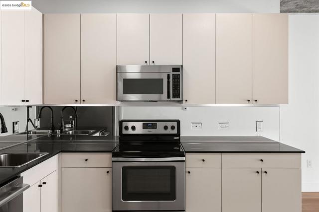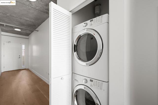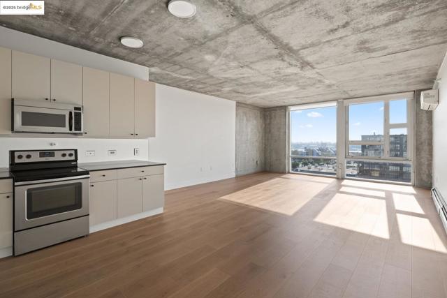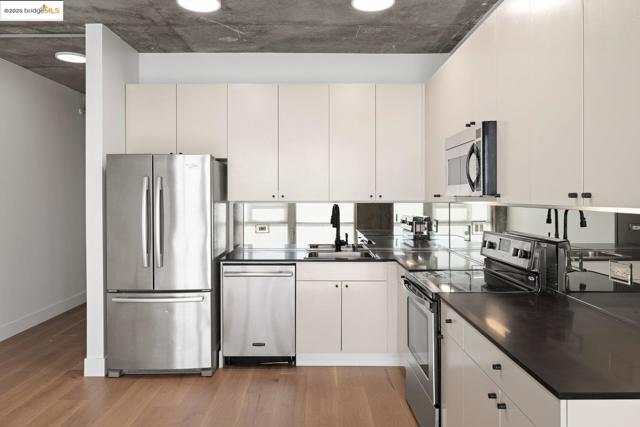 Luxury view loft condo, 8th floor, southern water views overlooking Jack London Square marina. Perfect downtown location. Updated 2025, sharp stainless-steel and stone kitchen, modern interior and high concrete ceiling. Floor-to-ceiling windows bathe the loft in light, plus peekaboo City views. Washer/dryer in unit, deeded garage parking and storage. The Sierra is a concierge building: 24-hr. front desk/security and package storage. You'll enjoy the pool, sauna, BBQ, huge gym, and a celebration room w/ pool table. Get anywhere around the Bay Area using Amtrak, BART, the SF ferry, or freeways. Jack London Square is a foodie hotspot, and Brooklyn Basin isn't far via the Estuary pathway. Even the free Oakland-Alameda Water Taxi! Best condo value and building in town.