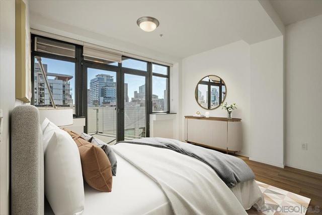 BEST DEAL IN SOLARA LOFTS – RARE 2 BALCONIES + 2 SIDE-BY-SIDE PARKING SPACES! Urban living at its finest in this stylish south-facing 1-bedroom loft condo featuring two private balconies—an extremely rare find in the community. The open layout includes upgraded flooring, stainless steel appliances, in-unit laundry, and a generously sized bedroom and bathroom. Added convenience includes two side-by-side parking spaces and a private 3' x 10' secured storage room. Solara Lofts offers fantastic amenities including a fitness center, male/female locker rooms, a beautiful lobby, elevators, visitor parking, and secure gated building access. Prime location—just minutes from Little Italy and the Gaslamp Quarter, with excellent I-5 freeway access only one block away. Don’t miss this unbeatable value in one of Downtown San Diego’s most convenient and walkable neighborhoods!