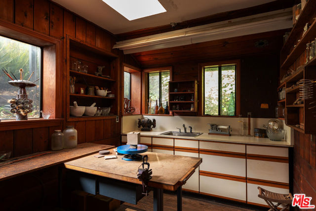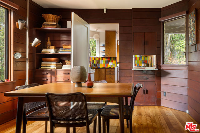 The Natzler Residence is offered for the first time in 80 years. This 1937 home in Upper Nichols Canyon served as both sanctuary and working studio for Gertrud and Otto Natzler, among the most important ceramicists of the 20th century. In light-filled rooms overlooking treetops and canyons, Gertrud threw delicate forms on the wheel they brought from Austria while Otto developed the groundbreaking glazes that defined their partnership.The main residence includes two bedrooms and two and one-half baths, a living room with fireplace, dining room, and a kitchen with ceramic tiles glazed by Otto Natzler. In 1988, Otto commissioned a two-story addition inspired by his Austrian roots a contemporary nod to an Alpine chalet designed by architect Alfred T. Wilkes, AIA, for photographer Gail Reynolds Natzler, his second wife after Gertrud's passing in 1971. The addition introduced a studio and darkroom below and a vaulted primary suite above, both with wraparound balconies and canyon views.The detached Natzler ceramic studio suite above the garage includes a kitchen, small bedroom, and bath. The property abuts the Briar Summit Open Space Reserve, ensuring lasting privacy and an enduring connection to nature a living reflection of the Natzlers' creative legacy.