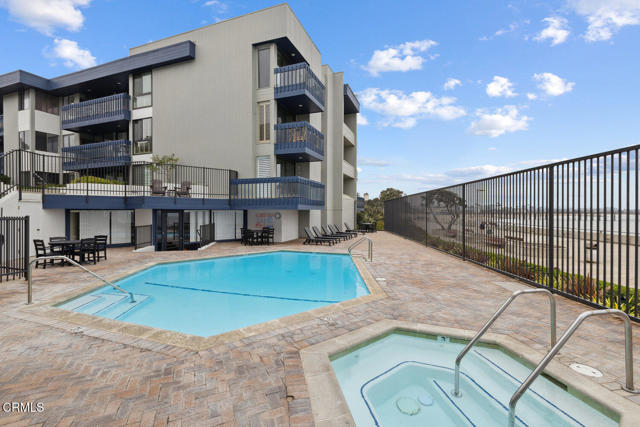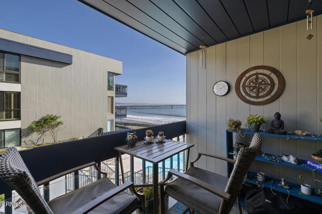 Coastal Living at Its Best -- Ocean-View Condo in Ventura, CA! Just three doors down from the Surfer's Point Promenade and steps to the sand, you'll have AMAZING ocean and pier views and fall asleep to the sound of the waves. In fact, you can hear the waves from every room in the unit! There are two entries to the balcony and strategically placed wall-sized mirrors to bring the ocean views inside. Other views are of the pool and courtyard. The updated kitchen has loads of Shaker self-closing cabinetry, seeded-glass doors, pots-and-pan drawers, an LG French refrigerator, a Farmhouse sink, and Dekton countertops. A porthole allows a clear view to the living room, creating an open floor plan. Waking up to an ocean-view window in your spacious primary bedroom makes mornings a breeze! Dekton countertops and updated hardware grace the primary bath. Bedroom #2 is currently being used as an office, with a double-door-sized opening that creates an open floor plan, offers some fantastic views, and includes a slider to the balcony. The half bath is cozy and cute. Property amenities include a year-round heated pool, spa, fitness center, clubhouse, and two saunas. The gated garage offers two side-by-side assigned parking spaces and ample storage. The building is located next to the Ventura County Fairgrounds, which hosts year-round events, the Derby Club, and the Players Poker Club. All this is within walking distance to Ventura's historic dining, nightlife, art, and shopping district. Every day feels like a seaside staycation. If you've dreamed of living where flip-flops count as formal wear, this is your place!