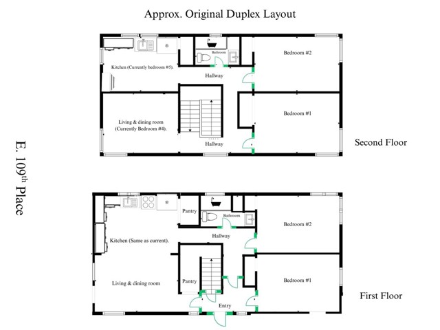 With over 2,600 square feet of flexible interior space, opportunity truly awaits! This duplex was turned into a large single family residence, with the easy potential to be switched back into a duplex or more! 1803 E 109th Place not only offers its own potential rental income, but it also offers an over 7,600+ sq. ft. lot with additional ADU potential, multi-car parking and or RV/ boat parking etc.. The home currently features 5 bedrooms, 2 bathrooms, and 2 additional bonus rooms, offering endless possibilities for a home office, gym, guest suites or even possible expansion into another unit! The original duplex offered two - two bedroom, one bathroom units. One upstairs, and one downstairs. Bring your vision and a plans to make it your own!