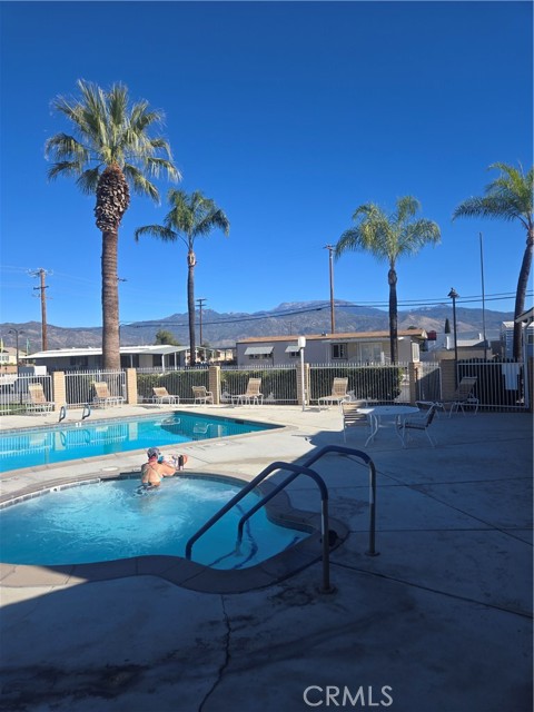 Make this home the first on your list, and it will be the last you look at. THE HOME is open, airy, and in a quiet area of the east end of Hemet, close to shopping and transportation, and is a very popular senior part that includes a 9-hole Golf course. Very nice Clubhouse and facilities, pool, and many activities. Hosted by the park. Although the home shows as a 2-bedroom home, it has a massive insulated sunroom, with no less than 5 entry and exit doors in and out of that area. Inside the home are all the appliances you need. And the bedrooms are carpeted and of substantial size, and here's a treat you don't find very often: an awesome Jacuzzi tub in the secondary bathroom is a full shower-tub bathing facility to boot. Check the pictures out, and you'll see how well-maintained and upgraded the home is.