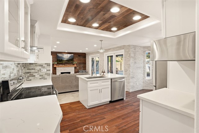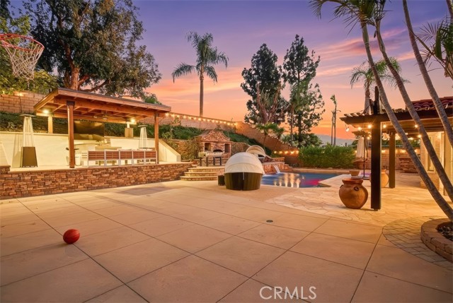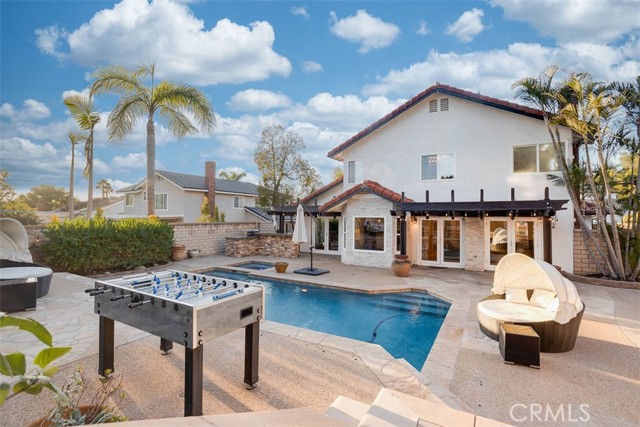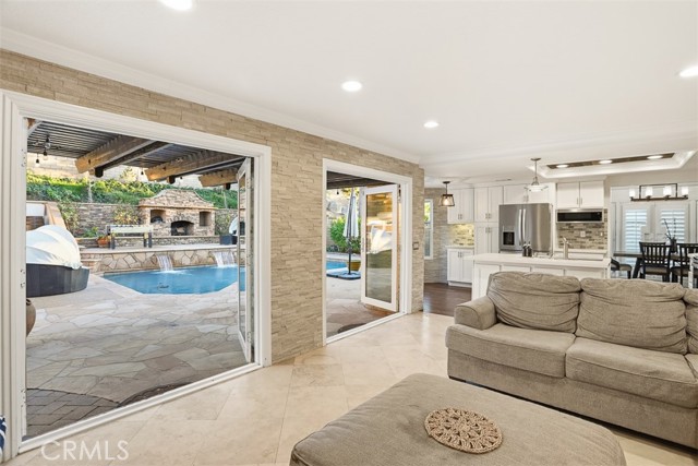 Welcome to 5600 Via De Campo—where comfort, character, and the California lifestyle come together in a home designed to be lived in, loved, and shared. Tucked into one of Yorba Linda’s most inviting neighborhoods, this 4-bedroom, 3-bath residence offers 2,287 sq ft of living space that feels even larger thanks to soaring vaulted ceilings and an airy, open flow. From the moment you arrive, the home sets a tone of pride and warmth. The extra-wide diamond-cut ribbon driveway, lush landscaping, decorative wrought-iron gates, and rare RV parking create a grand yet welcoming first impression. Inside, a custom spiraling iron staircase anchors the home with striking craftsmanship. The formal living and dining rooms invite gathering, and two sets of swinging French doors open wide to a private patio with an outdoor kitchen—blending indoor and outdoor living in a way perfect for California evenings. A first-floor bedroom offers flexibility for guests, an office, or a home gym, while a dedicated laundry room adds everyday convenience. Throughout the home, recessed lighting, tile, bamboo, and natural stone elevate the details. The remodeled kitchen is a standout, featuring quartz countertops, stainless steel appliances, glass-front white shaker cabinetry, reclaimed-wood accents, stacked-stone details, and both a breakfast bar and a cozy eat-in nook. The adjoining family room continues the theme of comfort and character with its stacked-stone fireplace, reclaimed-wood backdrop, and custom dry bar with wine fridge. Wide French doors open to create a seamless connection to the stunning backyard. And the backyard is truly a showstopper: a custom pool with waterfalls, spa, tiered patio with wood-burning fireplace, two golf putting greens, an outdoor kitchen with granite counters and built-in BBQ, all-seasons patio cover, fruit trees, basketball hoop, and generous RV parking. It’s an entertainer’s paradise and a private retreat in one. Upstairs, three spacious bedrooms offer thoughtful touches including ceiling fans, custom lighting, and reclaimed-wood barn doors. The main bedroom features a sprawling layout and a spa-inspired ensuite bath. All of this sits minutes from 100+ miles of trails, Brush Canyon and Box Canyon Parks, pickleball courts, and top-rated Bryant Ranch, Travis Ranch, and Yorba Linda High School. Experience the charm, community, and lifestyle that make Yorba Linda one of Orange County’s most sought-after cities.