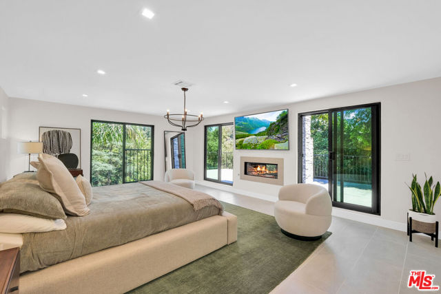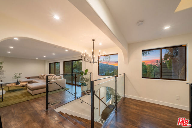 Welcome to your dream home in the prestigious Lake Hollywood Knolls. This exceptional residence has been recently renovated and offers breathtaking views from every room and an unparalleled location, just moments away from major freeways, shopping, dining, fitness centers, hiking trails, and entertainment hotspots, including Universal Studios. Step into the grand foyer and ascend to the stunning main level, where open-concept living awaits. The spacious family room, filled with natural light, flows seamlessly onto a private balcony perfect for soaking in those iconic California sunsets. Adjacent is the elegant dining area and a chef's gourmet kitchen, complete with a large island, high-end appliances, and plenty of space for entertaining. French doors open to the private backyard oasis, featuring a built-in BBQ, cozy fire pit, and lush landscaping that ensures privacy and shade. Upstairs, the expansive primary suite offers the ultimate in luxury, with its own fireplace, a secluded deck, and a spa-like ensuite with dual vanities, double closets, and a separate tub and shower. Two additional generously sized bedrooms and a guest bathroom with direct access to the backyard deck complete the upper level, ideal for hosting gatherings or simply enjoying serene outdoor living. Conveniently located near the bedrooms is a laundry area. The lower level presents a unique opportunity with a converted basement that serves as an in-law suite or potential ADU. Equipped with a private entrance, kitchenette, full bathroom, closet, and washer/dryer, it offers flexible space for guests, extended family, or income generation. With nearly 4,000 square feet of living space and a coveted location just steps from Universal Studios, this Hollywood Hills masterpiece is a rare find. Don't miss your chance to experience the perfect blend of luxury, privacy, and convenience.