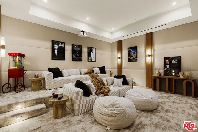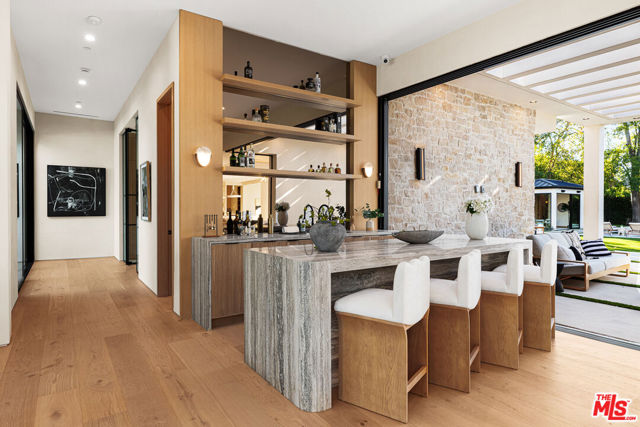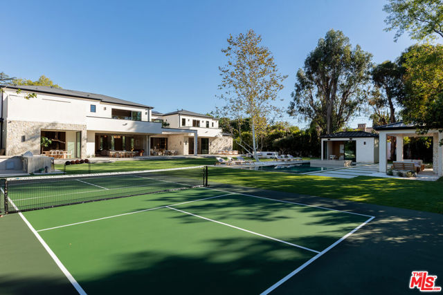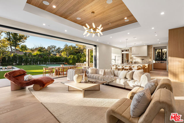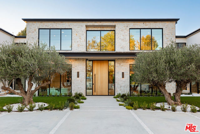A masterpiece of comfort, design, and effortless luxury, this estate is thoughtfully curated by Studio Brinkley Design and delivers a lifestyle where every detail has been considered and nothing has been overlooked. The newly built residence spans over 10,000 square feet, offering unparalleled design and thoughtful craftsmanship. The grand foyer, with its soaring ceilings, welcomes you to an inviting formal living room featuring a striking fireplace, custom built-ins, and a sophisticated wet bar that flows seamlessly into the family room and chef's kitchen. Designed for both everyday living and effortless entertaining, the kitchen is a true centerpiece with double islands, Taj Mahal quartz countertops, chef-grade Wolf appliances, a walk-in pantry, and a full secondary prep kitchen. Sunlight fills the breakfast nook while expansive sliding doors create a perfect connection to the resort-style backyard. A glass-encased wine wall highlights the formal dining room, positioned adjacent to a private office that can also serve as an additional bedroom. The opposite wing of the home offers a spacious lower-level entertainment suite, complete with custom built-ins, a game and lounge area, and a dedicated home theatre, perfect for both hosting and relaxing. Throughout the residence, elegant paneling, designer finishes, and a state-of-the-art Control4 smart home system providing seamless automation for lighting, climate, security, and audio-visual experiences. A stunning staircase leads to four beautifully appointed en-suite bedrooms, including the primary retreat, a serene sanctuary with a fireplace, built-in wet bar, and two separate balconies, one offering a feeling of complete privacy with an outdoor sauna. The spa-inspired primary bath has dual vanities, a steam shower, a soaking tub, and an expansive custom closet. The backyard is an entertainer's paradise, with patios stretching the full length of the home, a covered outdoor living room with fireplace, a sparkling pool and spa, a fire pit, putting green, and sport court. A built-in barbecue area and pool house with an en-suite bath complete the resort-style setting. Additional features include an attached ADU with a private entrance, one bedroom, bath, and a versatile living area that can serve as a lounge, studio, or gym, ideal for guests or multigenerational living. The estate also offers a gated circular driveway and a two-car garage, all ideally positioned just moments from premier shops and celebrated local restaurants.