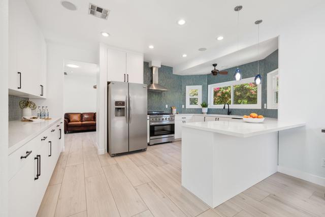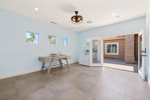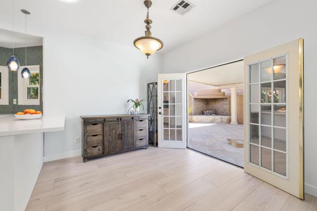 Motivated Seller! Your private desert oasis awaits! Exquisitely updated, this beautifully remodeled home in the sought-after Bella Vista neighborhood of North La Quinta offers approx. 2,600 SF of open-concept living, featuring 4 bedrooms, 3 bathrooms, and a rare private casita. Enter through designer gates into a private courtyard & enclosed patio with a cozy fire pit for intimate gatherings. Natural light pours into the expansive great room with soaring ceilings. Prepare to be impressed by the spacious newly completed stylish kitchen, thoughtfully designed for both culinary excellence and effortless entertaining. Gorgeous tiled backsplash, expansive countertops and generous cabinets, ideal for the modern cook or host. Bright breakfast nook off kitchen with French Doors that open to outdoor living with fireplace. Dining room with flexible use as a family room. Retreat to the spacious primary suite with slider and poolside views to the patio. Experience a spa-like escape in the beautifully remodeled primary bathroom, complete with a breathtaking large double shower, dual sinks, & walk-in closet. Two additional bedrooms with walk-in closets, one with glass frosted sliding doors & beautifully remodeled bathroom. A separate casita off courtyard with remodeled bathroom, walk-in closet & mini split AC unit, offers the perfect private retreat for guests. Escape to your backyard oasis with elegant travertine walkways, where you can relax in the pool & spa with soothing fountains, or host memorable gatherings around the custom fireplace & built-in BBQ. Laundry room, newer flooring throughout, recessed lighting, sola tube lighting, 2 car garage. Centrally located, in the IID for lower cost electricity. Low HOA! Close to IW Tennis Garden, dining, shopping, golf & festivals!