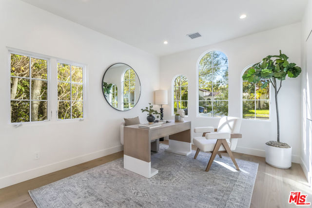 On a quiet Beverly Hills street, this updated Spanish retreat draws you in with a soft, golden glow of natural light moving through soaring ceilings. Inside, the home's original Spanish charm unfolds room by room, illuminating artful details from the arched windows to a sculpted fireplace that complements the home's architectural curves. The chef's kitchen features new stainless steel appliances and refined finishes that elevate both cooking and entertaining. The primary suite offers a generous walk in closet, an elegant standalone tub, and French doors that open directly to the backyard and resort style pool. Bright, inviting rooms flow effortlessly to outdoor spaces designed for relaxation and connection. A private guest house with its own kitchen and bath provides a flexible fifth bedroom for hosting, creative work, or extended stays. With its character, natural light, serenity, and truly livable design, this is the best value in all of Beverly Hills.