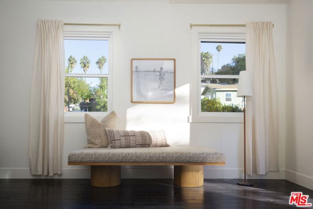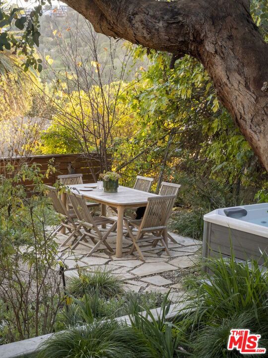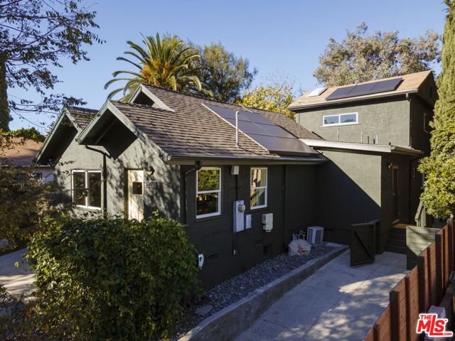 Re-imagined bungalow in coveted pocket of Highland Park. Perfectly positioned between Figueroa and York on a quiet street, this home is a hillside sanctuary in the city. Perched above the street behind a lovely screen of plants, there is a private front yard with garden boxes, tall bamboo, lush meadow grasses, a Santa Barbara peach tree, a pink lemonade tree, and passion fruit. Entering the home, you are captivated by soaring ceilings and a generous living room with a newly designed kitchen conducive for entertaining. Two bedrooms are located on the first floor, one with an ensuite bathroom. Off the kitchen, there is a laundry / mudroom with ample storage and easy access to the outside. Upstairs is another bedroom with an ensuite bathroom and charming stained glass window. Flowing from the upstairs bedroom is a terraced backyard with lush native and regionally appropriate plants that welcome pollinators, butterflies, and hummingbirds, and majestic eucalyptus that creates a calming dappled light. The yard is truly magical with the well thought out landscaping, the soft glow of the hills in the distance and pocketed areas to enjoy the yard including a built-in corner bench, grass area, dining area and hot tub. The home also has many updated systems, including solar panels, a grey water system, a 200 amp panel, tankless water heater and car charger. When not enjoying your home, you are only blocks away from all the shops and restaurants on York and Figueroa, the Farmer's Market and train. This spot is the best of hillside living and accessibility to Northeast LA happenings.