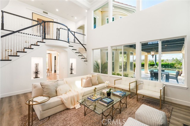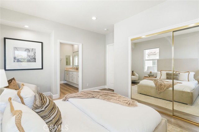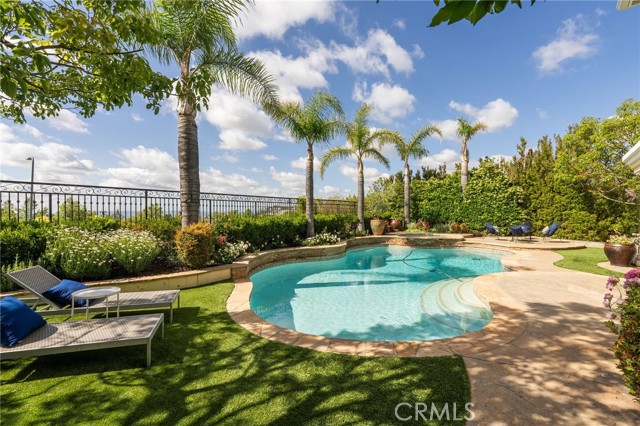 Welcome to this beautiful modern home in the heart of Porter Ranch located in the exclusive Renaissance community. The open floor plan seamlessly connects the kitchen, dining, and living areas. The designer kitchen features stainless steel appliances, built in refrigerator, custom oak shaker style cabinets, quartz countertops with enough barstool seating for 4. Adjacent to the dining room is a private room with wine fridge. Additional highlights include recessed lighting all throughout the home, paid off solar panels, security system and cameras, and 2nd-generation NEST thermostats. The massive primary suite offers a private balcony and an en-suite with beautifully laid tile, ample closet space, and a glass-enclosed shower. Each bedroom contains its own full sized bathroom. The backyard is built for gatherings with a pool, jacuzzi, BBQ pit, pergola covered patio for expansive seating, and nighttime views of the San Fernando Valley. Property is a short drive away from the The Vineyards at Porter Ranch, Porter Ranch Park and newly opened Jane and Bert Boeckmann Park. Priced to sell. Come see this home today!