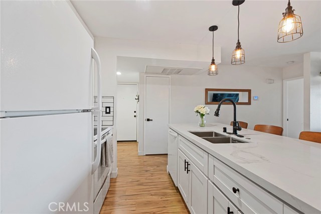 Welcome home to a quiet hilltop retreat with sweeping views of the San Luis Rey River valley and glowing sunsets that set the tone for peaceful living. This beautifully updated 2 bedroom, 2 bathroom home blends comfort and style with newer flooring, fresh paint, and an inviting open layout that pulls natural light through the entire space. The upgraded kitchen connects effortlessly to the living and dining areas, making everyday life feel easier and creating the perfect flow for hosting friends or cooking while enjoying the view. Both bedrooms open directly to an oversized patio, giving you a rare sense of indoor-outdoor living where you can start your day with calm morning air or wind down with wide-open scenery right outside your door. A smart split-bedroom design provides privacy for guests or family, and each bedroom has generous closets and its own refreshed bath with modern finishes. The home offers plentiful storage, central heat and air, and the convenience of a private garage plus an additional reserved parking space. Casa Vista Villas is known for its peaceful setting, and here you’re surrounded by nature while still being just minutes from River Village shopping, Daniels Market, local restaurants, and the nearby nature preserve for walks and fresh air. If you’re looking for a home that delivers serenity, light, views, and everyday ease, this one brings it all together.