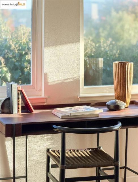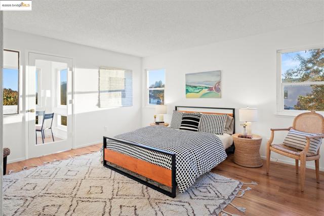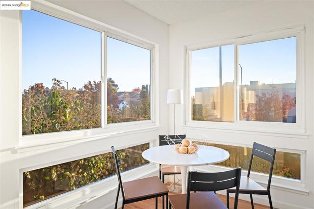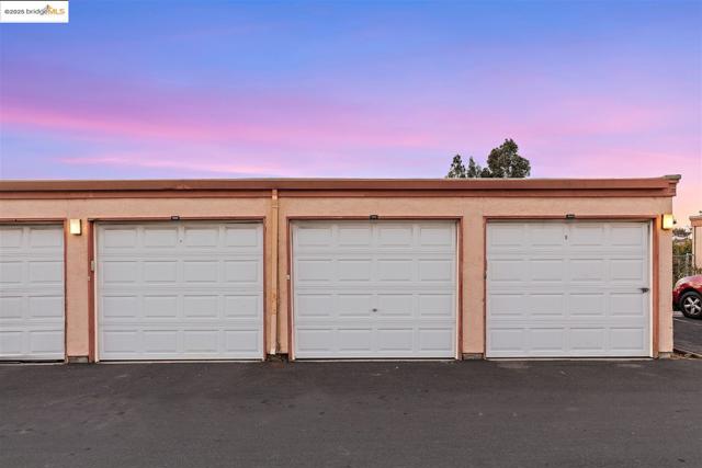 Second-floor corner unit, drenched in sunlight with large windows. The open floor plan gives a spacious feel and has a dual primary suite configuration, offering nice separation of spaces for occupants. Laminate floors in the living/dining and bedrooms. The bathrooms have separate vanities and tub over shower areas and new lights (2025). Sizeable bedrooms with large windows. Convenient in-unit washer and dryer, detached 1-car garage parking, and an additional assigned parking place with the unit number. The association has a clubhouse and pool, as well as an area with barbecue grills for outside gatherings. Close proximity to several shopping plazas, one conveniently located right across the street. Easy access to Highway 80 and public transportation.