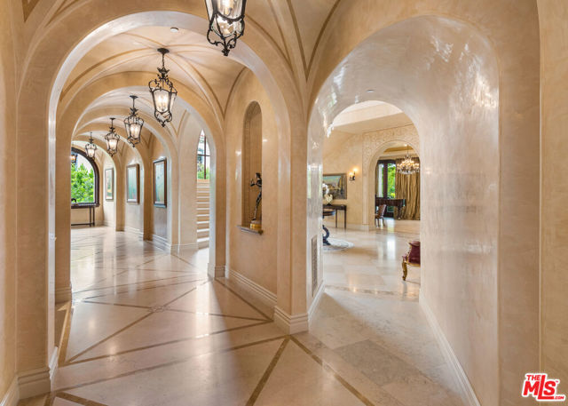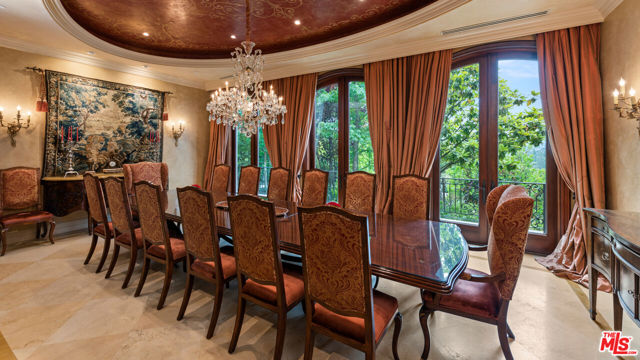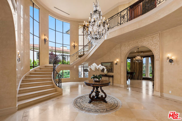 Situated in a prestigious Bel Air Crest 24-hour guard gated community sits this remarkable end of cul-de-sac estate epitomizing luxury and sophistication. Offering an extraordinary living experience, this property welcomes you with a grand entrance featuring a meticulously landscaped lot, lush greenery and a sweeping gated driveway to a 7-car garage. An impressive architectural facade with timeless design seamlessly blends modern elements with classic charm throughout this estate. Upon entrance, you are embraced with soaring ceilings, an abundance of natural light streaming through large window sand a spacious open floor plan. The gourmet Chef's kitchen features top-of-the-line appliances, custom cabinetry, and an expensive center island with seating. Adjoining the kitchen is a breakfast area, living area with grand piano and a imposing formal dining room ideal for dinner parties. Offering five luxurious bedrooms, including an exquisite primary suite that serves as its own private retreat. The primary bedroom features a spacious layout, sitting area, privatebalcony overlooking the lush grounds and a tranquil spa-like HIS and HER dual bathrooms complete with a soaking tub, walk-in shower and large walk-in closets.Additional amenities in this home include a media room, fitness center, wine cellar, sauna and elevator. The outdoor is a sanctuary of its own, providing a sereneescape from the bustling city with expansive canyon, golf course and city views. The large backyard showcases a pristine infinity pool, spa, BBQ, vegetable/fruit garden and a spacious patio area perfect for outdoor dining and relaxation. Lush landscaping and mature trees surround the property, offering privacy and asense of tranquility. Not to be overlooked, the Bel Air Crest community includes a new clubhouse with a huge brand new gym, putting greens, multiple tennis and basketball courts and children's playgrounds. With its luxurious design, impeccable craftsmanship, and exceptional amenities, this estate exemplifies theepitome of luxury living in Bel Air.