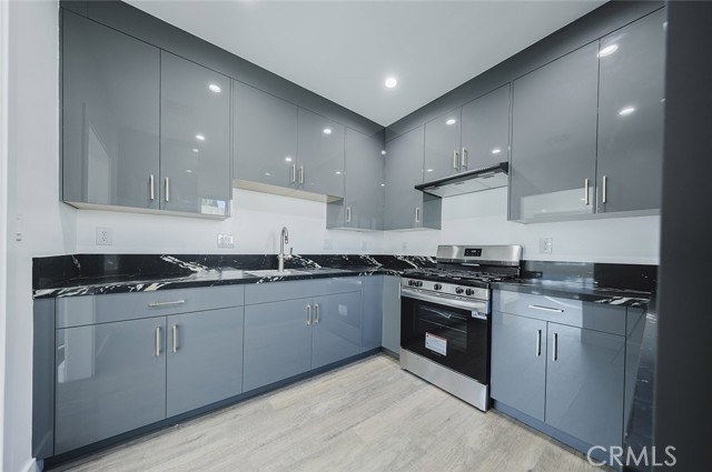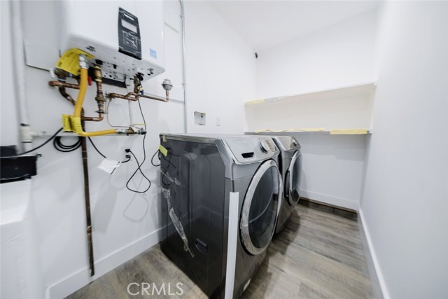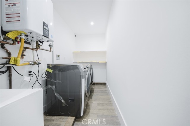 The home features an open layout with high ceilings wood color flooring and fresh white interior paint that enhances the abundant natural light from oversized windows. The modern kitchen offers stainless steel appliances contemporary cabinetry and an open flow ideal for everyday living and entertaining. A dedicated laundry room adds convenience.