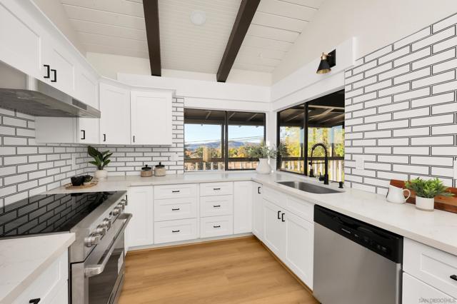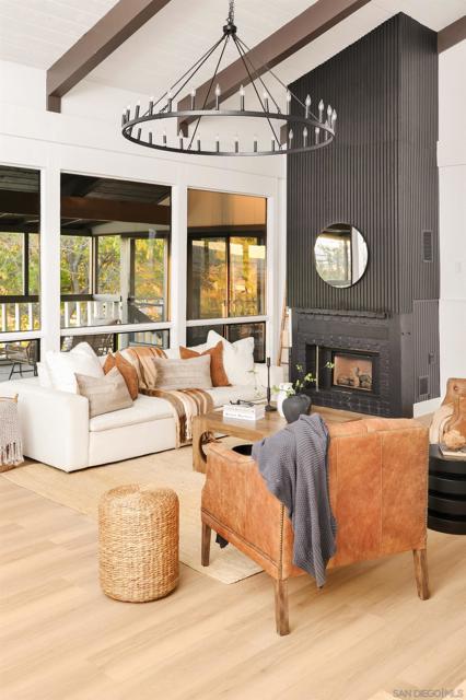 Experience the ultimate mountain retreat at 32130 Cerrada Del Coyote in historic Warner Springs. This fully upgraded 4-bedroom, 2-bath home blends modern luxury with timeless charm. Every detail has been thoughtfully designed, featuring high-end appliances, designer finishes, custom lighting, vaulted wood-beam ceilings, and elegant hardware throughout. Two family rooms each have a fireplace, and the intimate breakfast nook overlooks breathtaking mountain views, creating a perfect balance of comfort and serenity. Step outside to the expansive deck to enjoy the meditative landscape, or explore nearby outdoor adventures—less than a mile to Warner Springs Ranch Resort, hiking trails, and just 3 miles from local wineries. Unique architectural details include wood plank accent walls adding character to the home’s contemporary upgrades. Its close proximity to Julian offers small-town charm alongside the seclusion of this private retreat. This Warner Springs treasure seamlessly combines luxury upgrades, designer touches, and serene mountain living, making it a must-see for anyone seeking a private and stylish escape.
