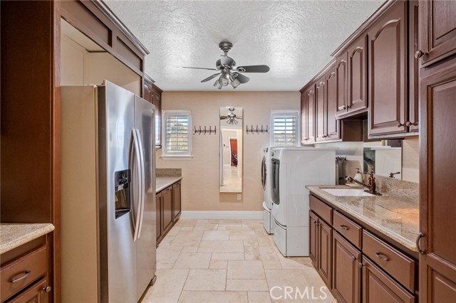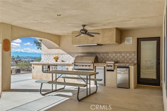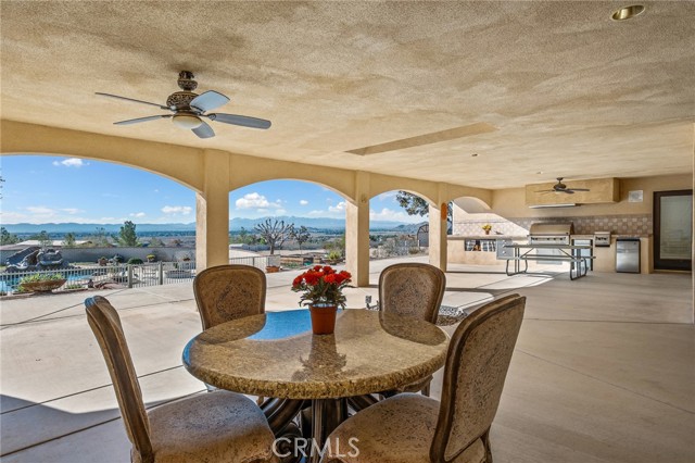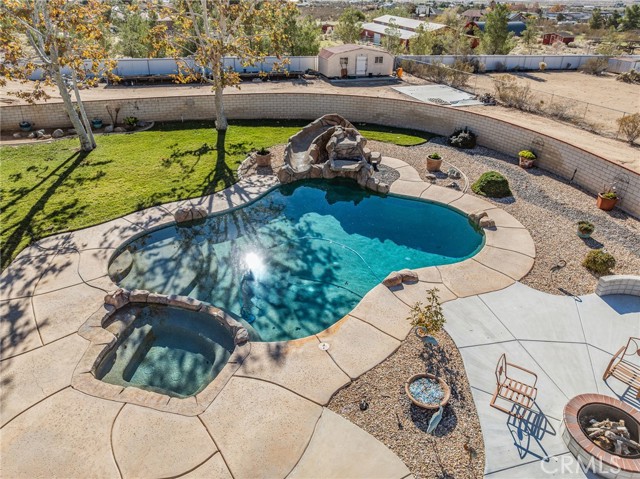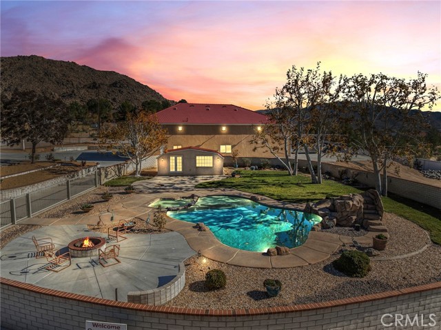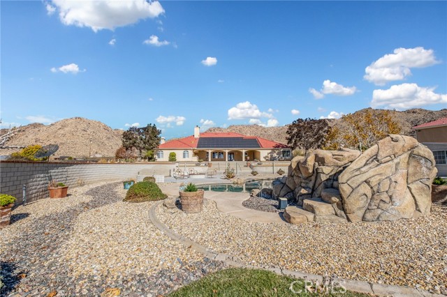 Step outside to resort-style living with a sparkling pool and spa, waterfall, pool house, fire pit gathering area, and an expansive covered back patio with an outdoor kitchen/entertaining area—perfect for sunset evenings under the High Desert sky. Utility features are equally impressive, including two fully owned solar systems (home + pool/spa), plus the rare advantage of both a private well and utility water for efficiency and independence.