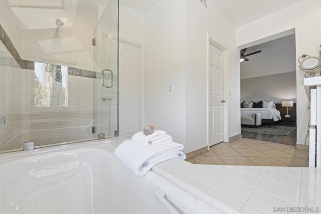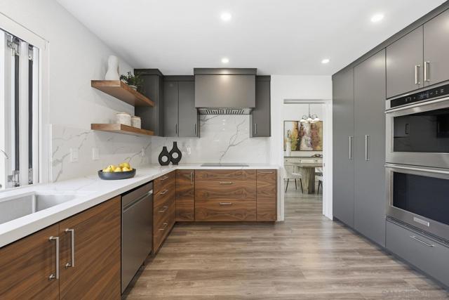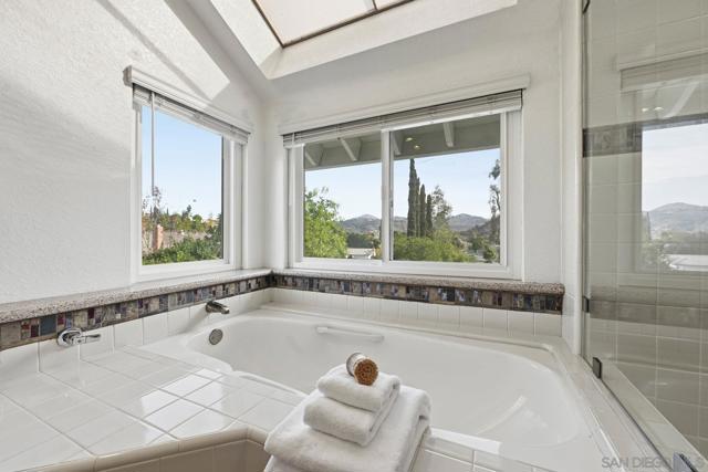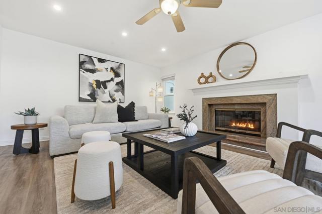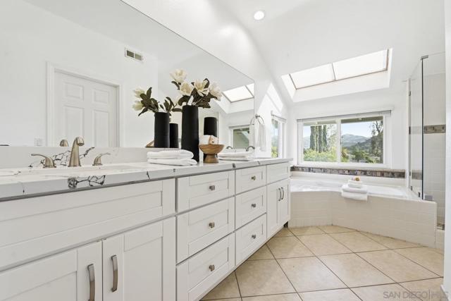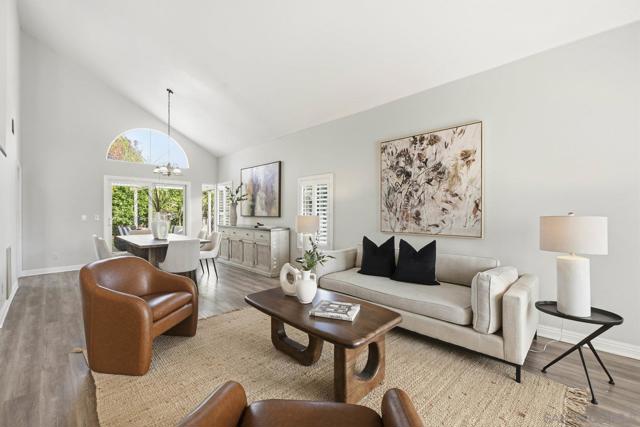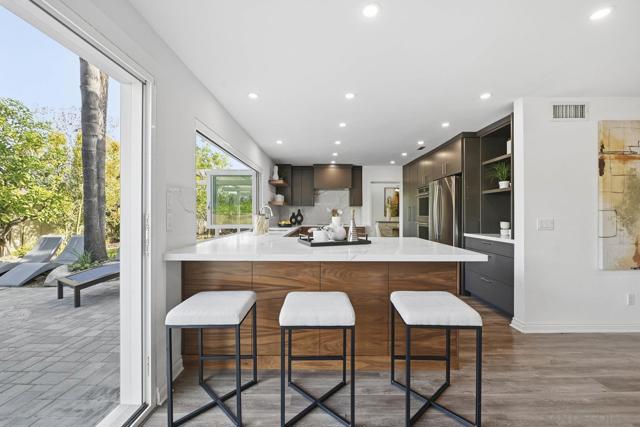 Absolutely Gorgeous Poway home with a modernized pool and spa and a 3 car garage on a cul-de-sac! No expense spared on a brand new Chefs European style kitchen with custom walnut grain cabinetry, bifold window, a huge quartz counter leading into newly expanded breakfast area with a slide and stack glass door. Newer vinyl flooring throughout. Fully paid solar and tile roof. Vaulted ceilings. Spacious primary suite with views of Twin Peaks Mountain. Resort style backyard with stunning pool, newer barbecue setting, lush garden with orange, lime, lemon trees and cozy pergola with bench tucked into the foliage, easy maintenance turf, and a shady covered patio with brick pavers. Potential RV Parking and Award-winning Poway Unified schools! No HOA or Mello Roos fees!